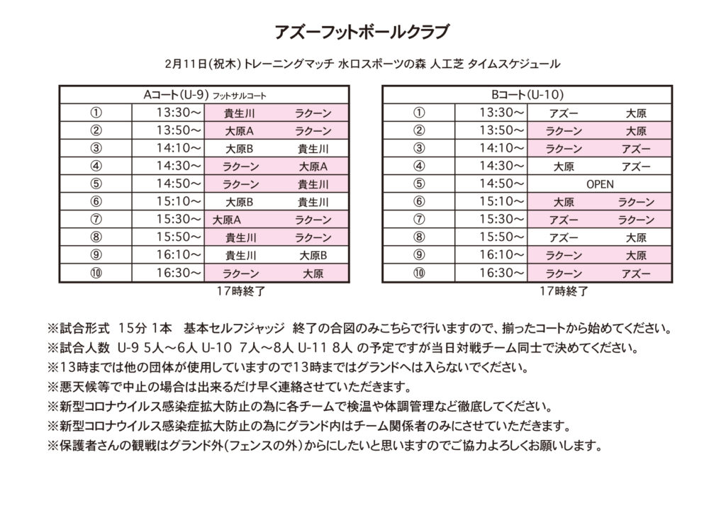 さて、AZULとのトレーニングマッチの詳細を下記の通りお知らせいたします。