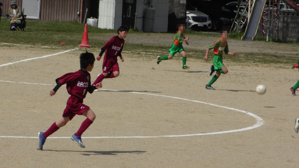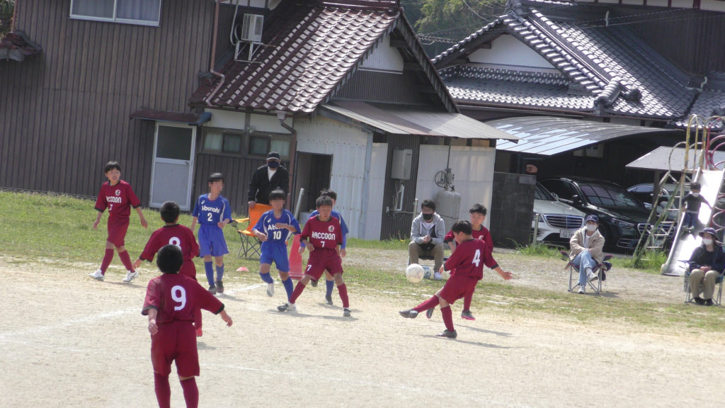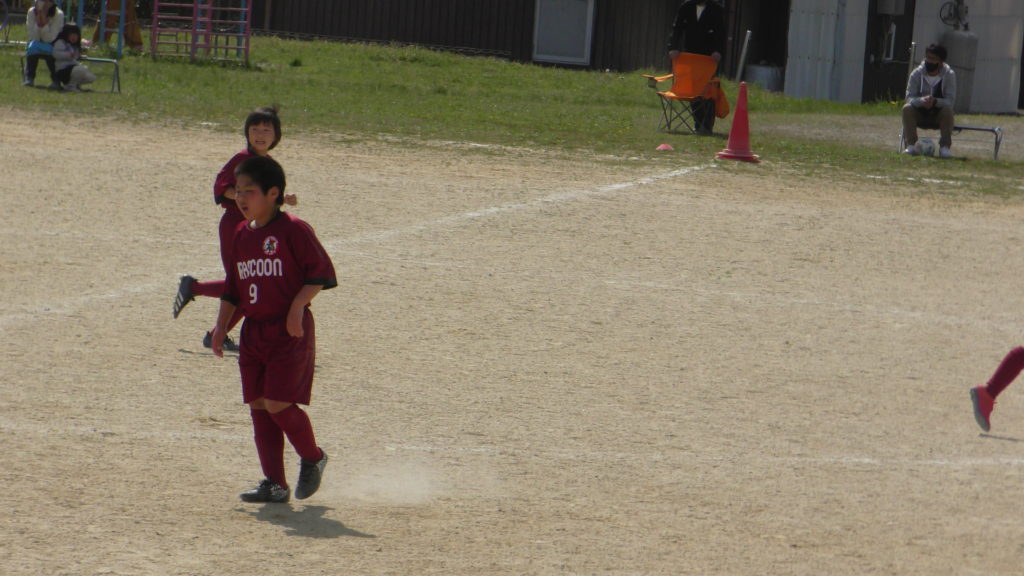 1試合目は貴生川SSSとの一戦。子ども達はドキドキ。緊張をほぐそうとコーチのギャグも子ども達に伝わらず………😅もう少し簡単なギャグを考えないと😅試合は、なかなかいいペースで試合を運んでいたが、なかなかシュートが決まらない打っても打ってもバーやキーパーの正面。枠外。思わずコーチ陣天を仰ぐ。その矢先にシュートを打たれ、失点😵シュートの制度が羨ましい😦前半0対1で折り返す。シュート外しすぎた子泣く😥少しポジションを変えて後半スタート。なかなかチャンスはあるもののシュートまで行けず、相手のDFがしつこい。後半半分を過ぎたところでビックチャンス😀これは決めてくれっと心の中で思いながら見守る。なんとゴール。よっしゃー。なんとか引き分けに持ち込んだ。結果1対1