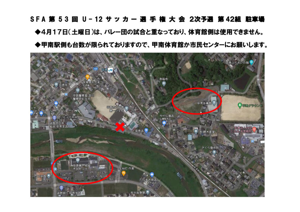※駐車場から試合会場まで子どもの足で5分~10分程かかりますのでご注意ください。