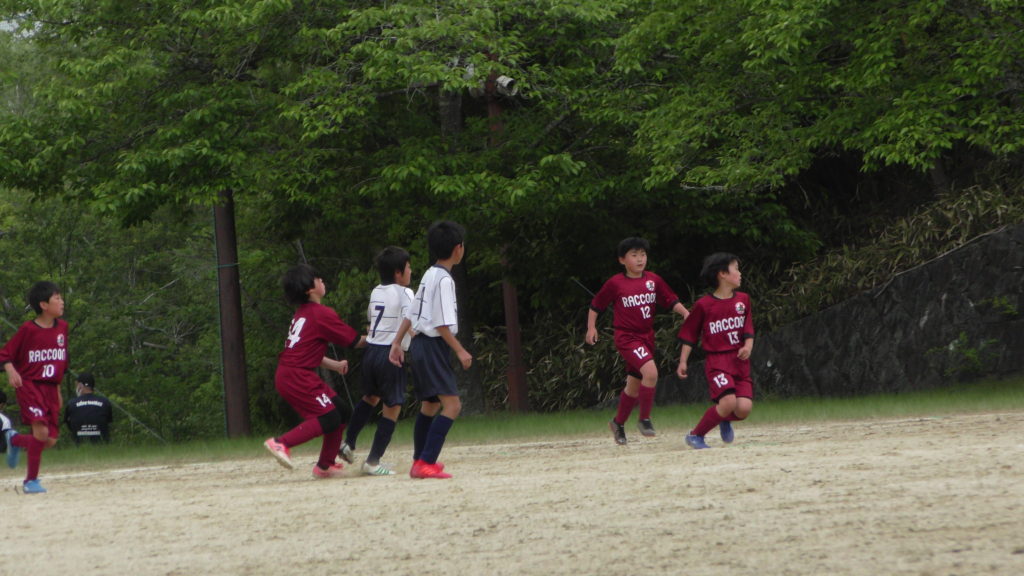 1試合目は伴谷SSSとの一戦。公式戦になれたのかリラックスしている子どもたち。でもなぜかあまり元気がない子。体が重そうな子。眠たそうな子。いつものラクーンの選手ではないような静かさ。試合が始まり、ゆったり、まったり試合を進める子どもたち。「あっしまった。今日はリーグ線なので20分ハーフと言うの忘れてた😓』まぁいいかー知らない方がいいこともあるしねー。と思ってる矢先にビックチャンス。あ~ダメか~。またまたチャンス。あ~ダメか~。DFの上がりが遅い。マークが付けてない。いや。やっぱりおかしい。どうした??またまたチャンス。やっと入った。入ったのはいいが、今日の試合はめちゃくちゃだ。何がやりたいのかがわからない😥後半も同じ感じで終わり結果3対1で勝利😀