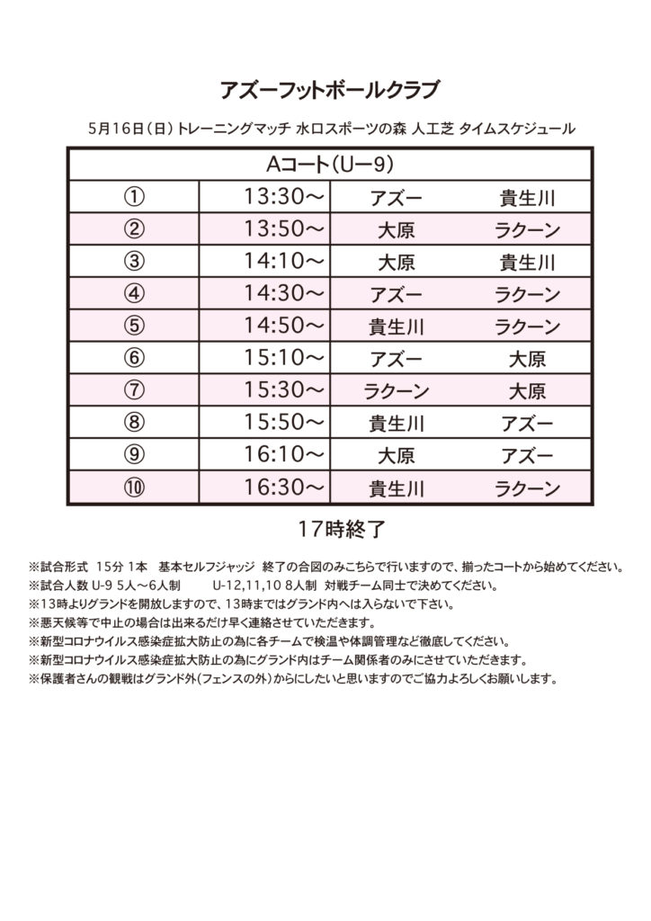 さて、AZULとのトレーニングマッチの詳細を下記の通りお知らせいたします。