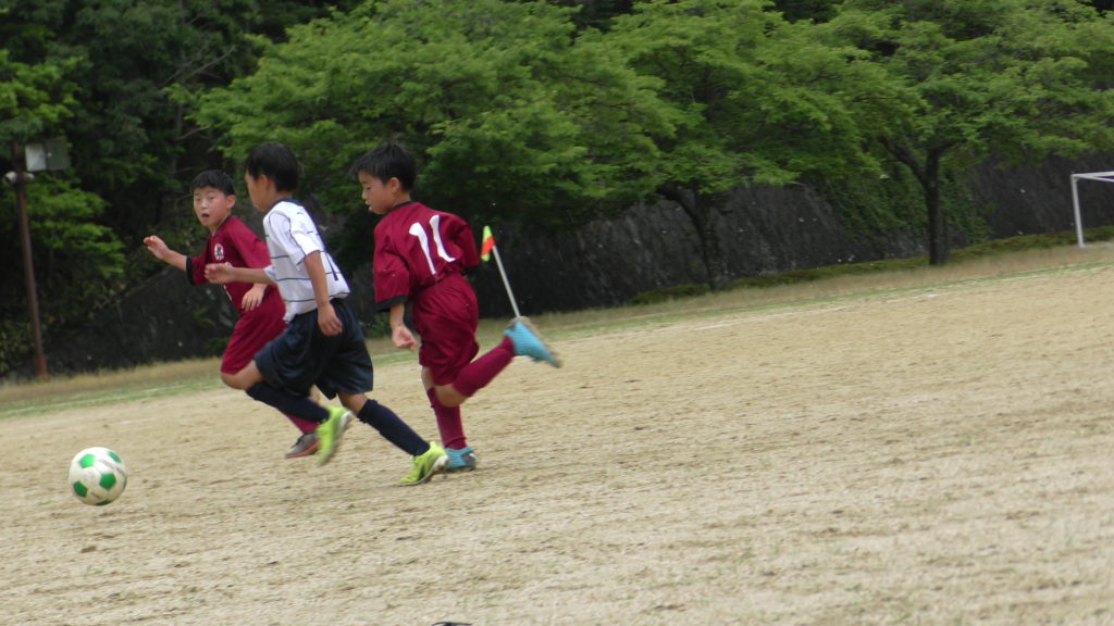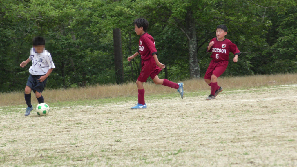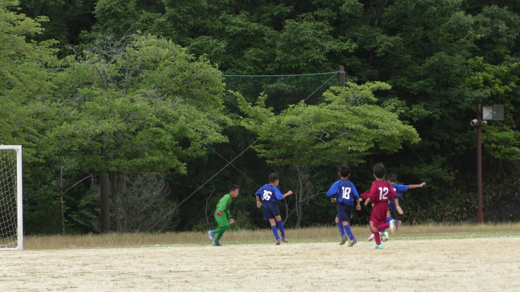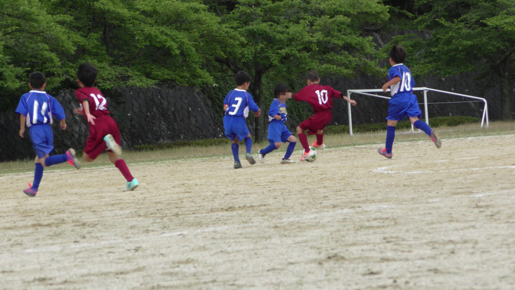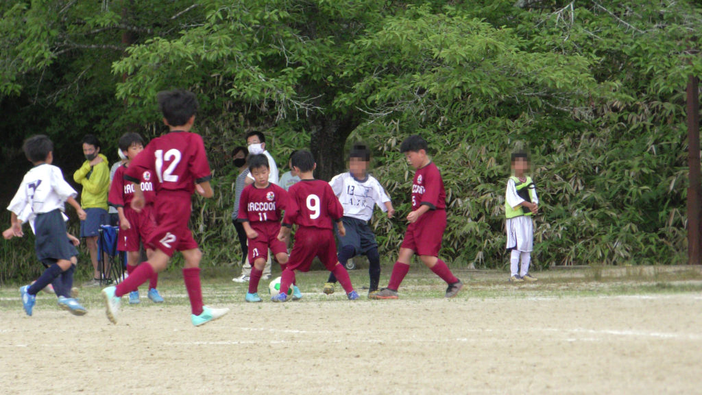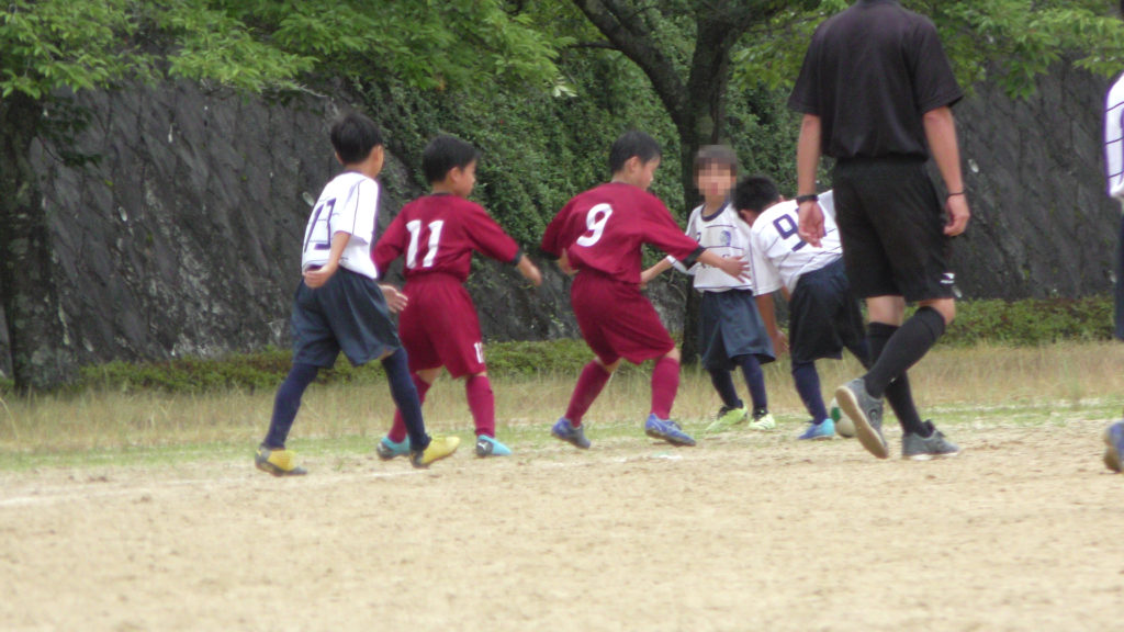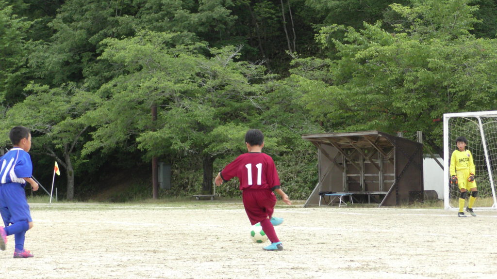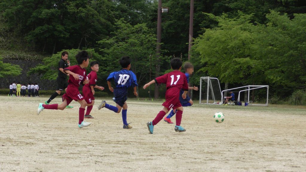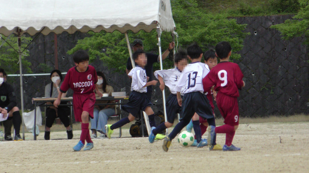 選手チェックも終わり、いざアップ開始。コーチの指示に珍しく“ハイ”との返事。めずらしい!いつもならえーとかあーあとか先に声が聞こえるが今日はハイの返事。どうした?コーチの心配をよそに子どもたちは淡々とアップをこなしていく。もうすぐ試合が始まるので、用意をし、いざ試合開始。1試合目は希望ヶ丘。予想通り早い。よく走る。ラクーンはなぜかDFラインがおかしい。みんながボールしか見ていない。相手よりもボールしか見ていない。なので、当然フリーな選手が出てくる。その子にいつもボールが行く。DFラインも上がりが遅い。なので中盤とDFラインを狭くするよう選手に言う。でもなかなかなおらない。やっぱり失点。ここまでキーパーがうまくセーブしてくれていたが、やっぱり、1対1は負けてしまう。気持ちを切り替え選手交代。やっぱりマークができない。でもGKがPKを止めてくれたのは大きかった。結果0対5で負け。