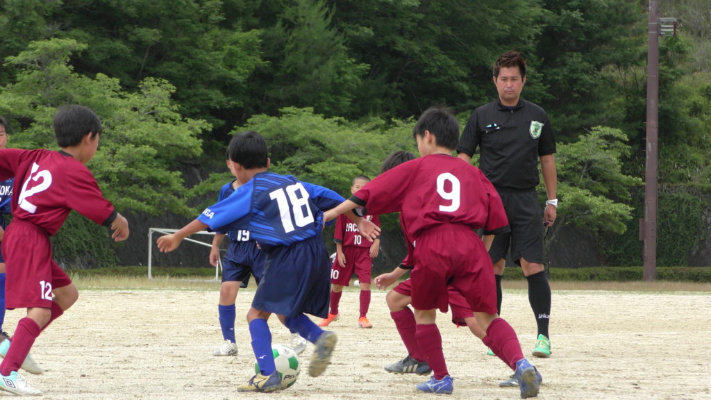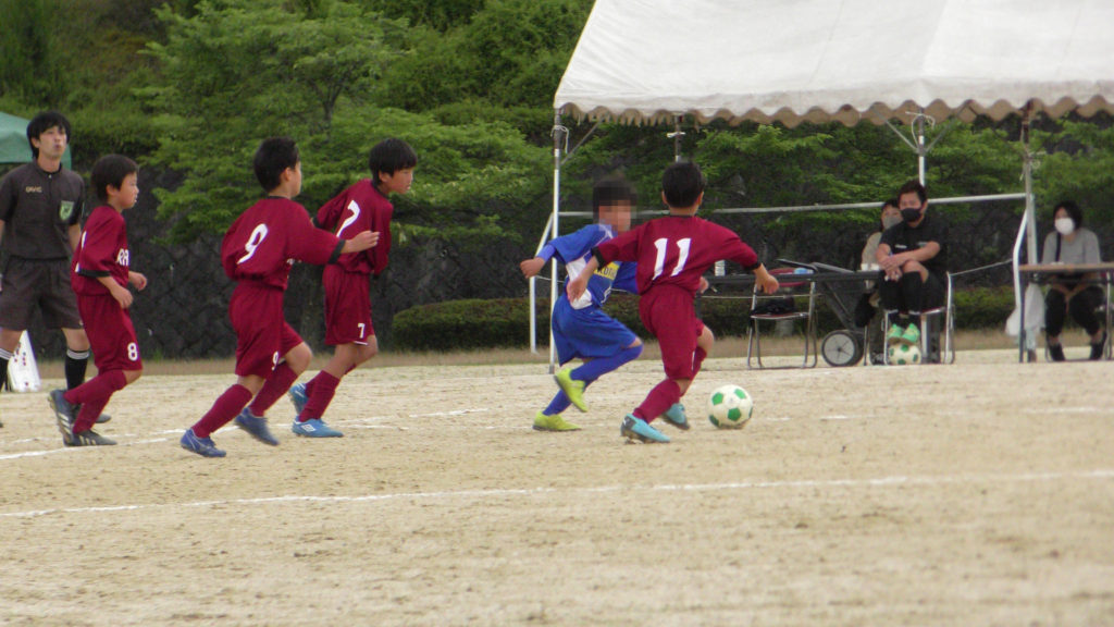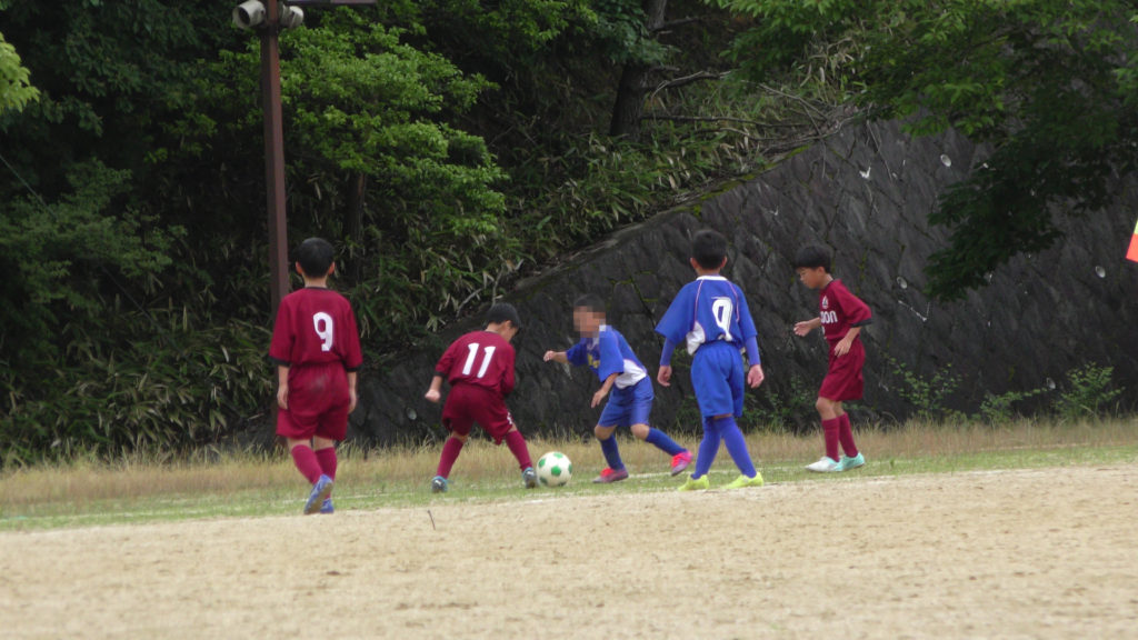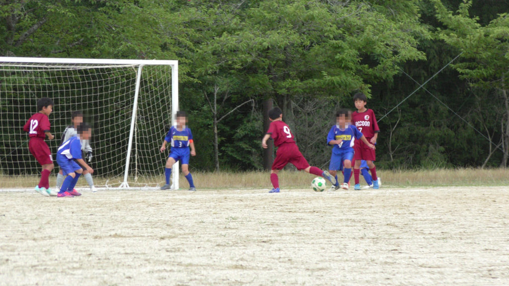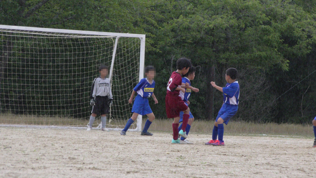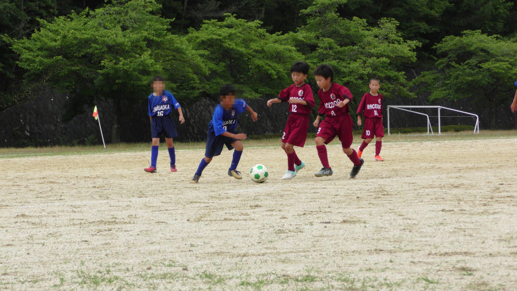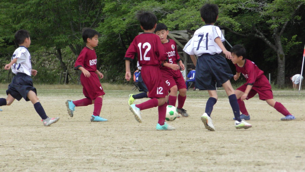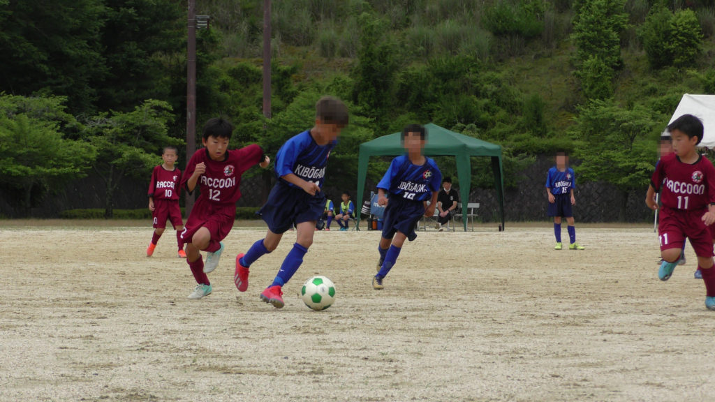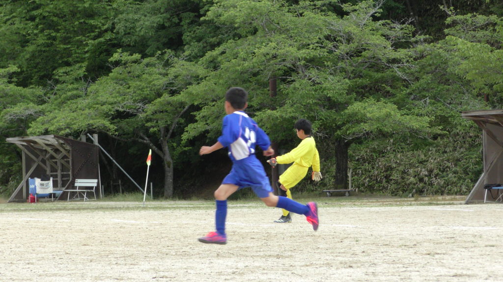 選手チェックも終わり、いざアップ開始。コーチの指示に珍しく“ハイ”との返事。めずらしい!いつもならえーとかあーあとか先に声が聞こえるが今日はハイの返事。どうした?コーチの心配をよそに子どもたちは淡々とアップをこなしていく。もうすぐ試合が始まるので、用意をし、いざ試合開始。1試合目は希望ヶ丘。予想通り早い。よく走る。ラクーンはなぜかDFラインがおかしい。みんながボールしか見ていない。相手よりもボールしか見ていない。なので、当然フリーな選手が出てくる。その子にいつもボールが行く。DFラインも上がりが遅い。なので中盤とDFラインを狭くするよう選手に言う。でもなかなかなおらない。やっぱり失点。ここまでキーパーがうまくセーブしてくれていたが、やっぱり、1対1は負けてしまう。気持ちを切り替え選手交代。やっぱりマークができない。でもGKがPKを止めてくれたのは大きかった。結果0対5で負け。