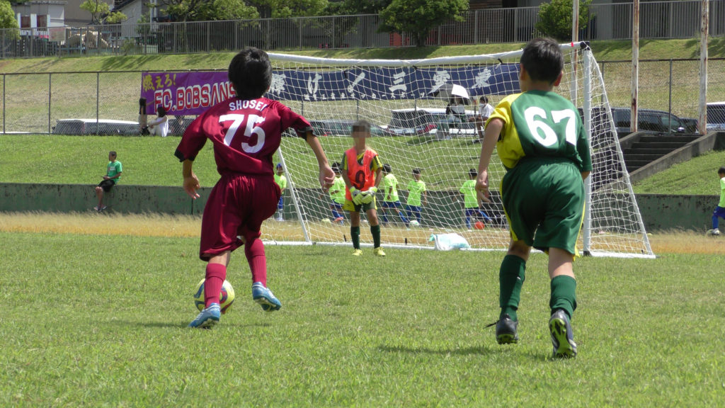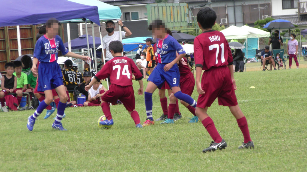さてさて試合内容については1試合目は大原SSSとの一戦。初めからプレスをきつく前からどんどんプレッシャーをかけに行く。しっかりみんなでボールを奪いにいく。体力があるうちにプレッシャーをかけてボールを奪い、シュートを決めきることを意識しながら試合を行いました⚽️どうしてもボールばかり見すぎて広がることを忘れたり、マークを見なかったりしてしまいますが、まずは、声を出し、マークの確認をすることを再確認しました😆後半からは3年生を少しずつ使いました。春から伸びてる子、あまり成長できていない子。一定の子。それぞれいましたが、どの子も試合に出るかにはアピールする子ばかりでした😃結果点数は忘れましたが勝利。
