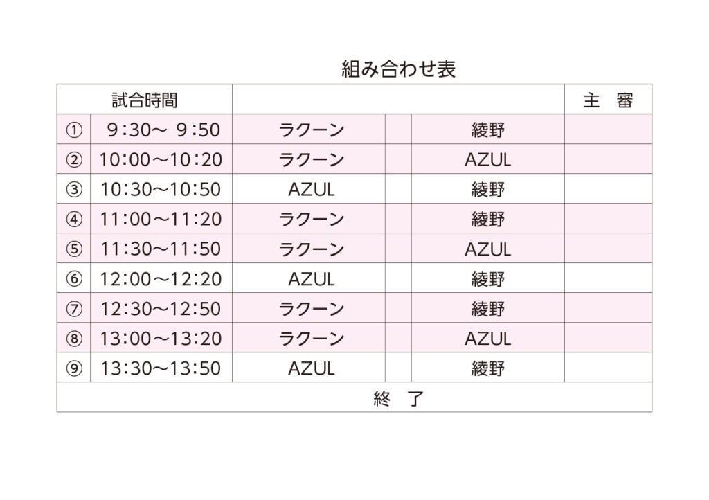 ※試合の当日、検温、体調の確認などしてください。