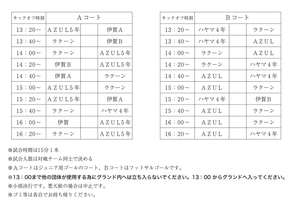 ※暑い中試合を行いますので、濡れても良いタオルも持って来てください。