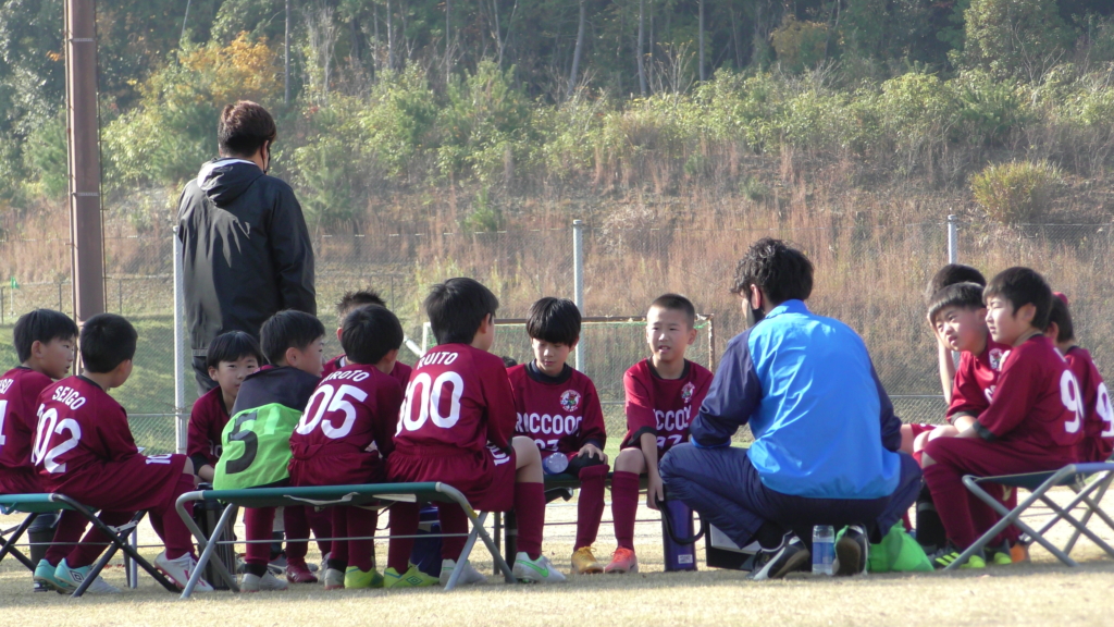 ハーフタイムや試合の合間に、子どもたちと話し合いの場を設けてどういう試合展開をするのか問いかけると、2対1で取りに行くと何人もの子どもたちから出てきました。セオリーは理解していた子どもたち。実際にどうやってボールを奪うのかチーム全体で確認し、前線からプレスをかけ、できるだけ相手コートで試合を進める。ゴールに向かう。コート幅目一杯使ってプレイするなど、少しずつですが、求める難易度が少しずつ上がってきています。実際に子どもたちが試合を行う中で、前からのプレスがハマり、ボールを取りたいところで奪うことが増えてきました♪