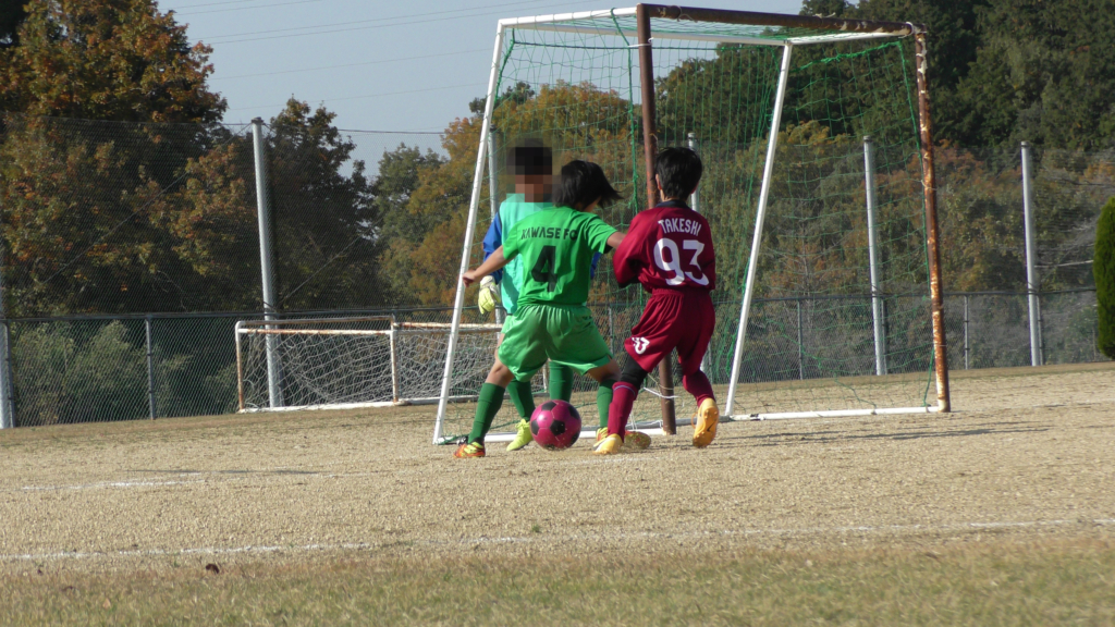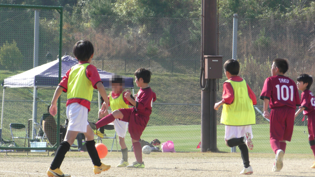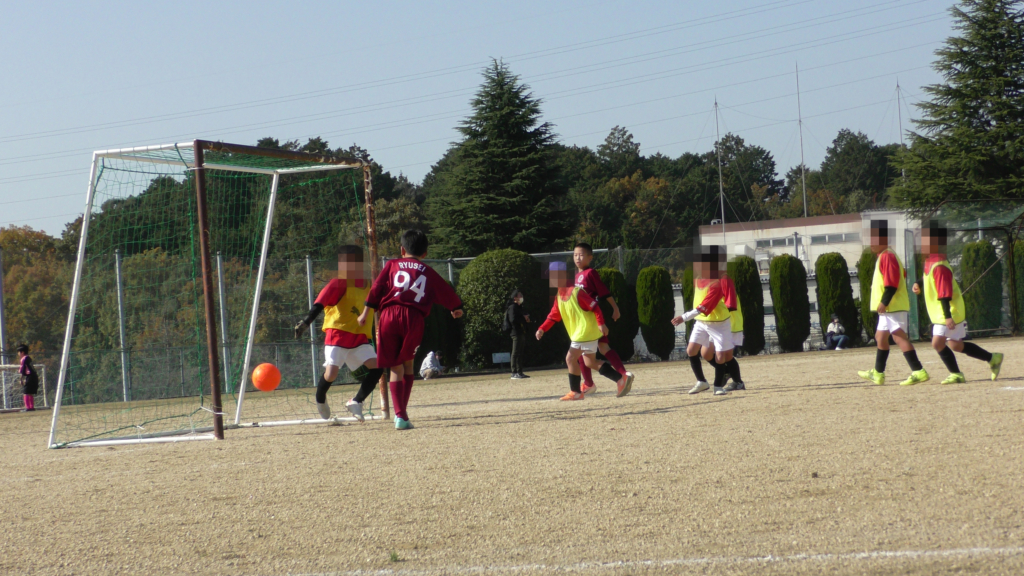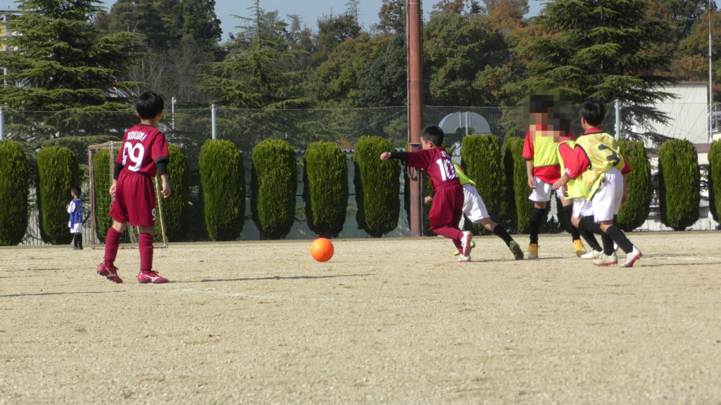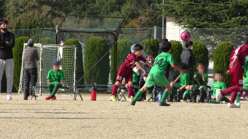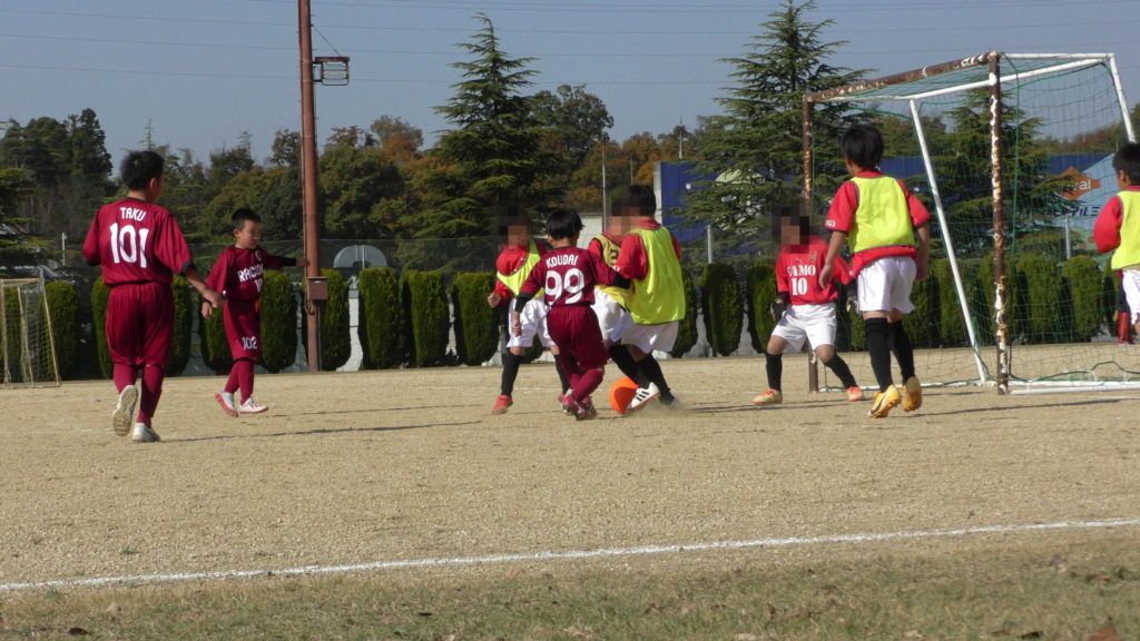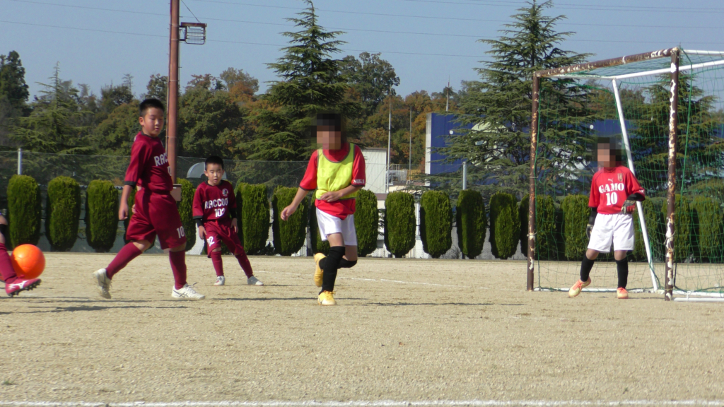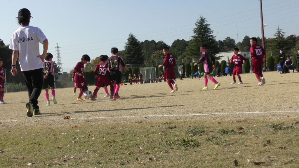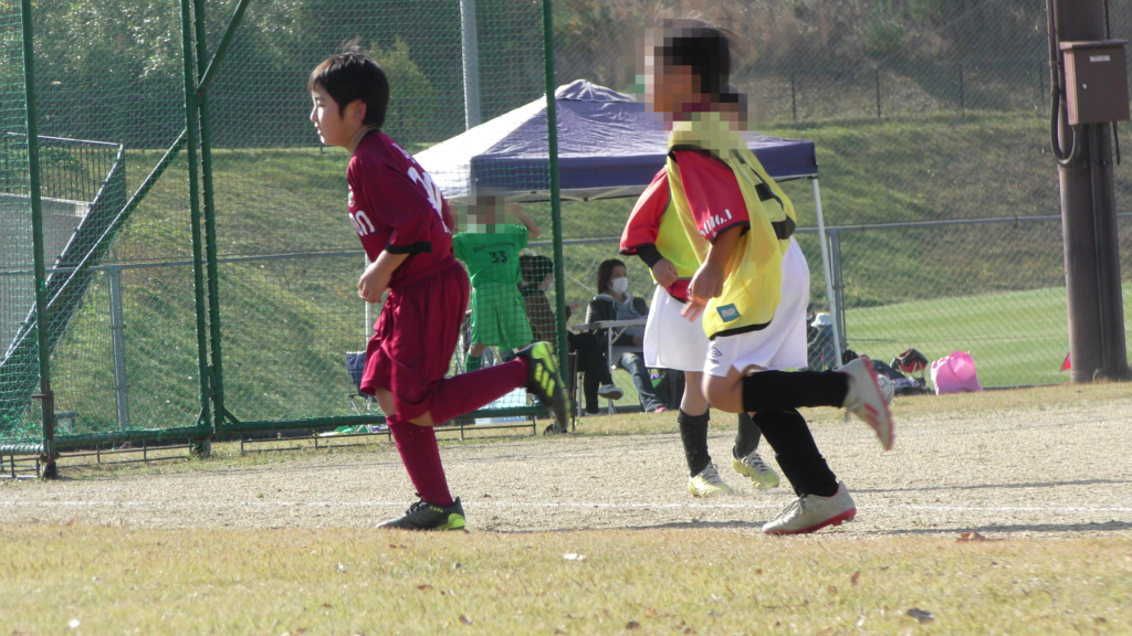 最初は、ボールを取りに行く姿はありましたが、簡単に抜かれたり、体を当ててボールを取ろうとするが仲間のフォローが遅く相手チームに自由にさせてしまう場面がありました。