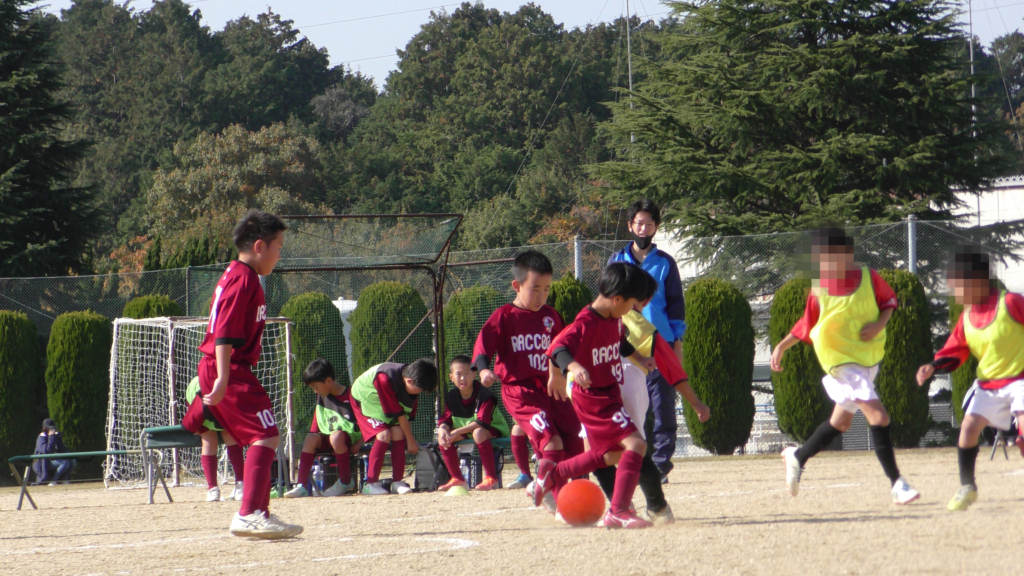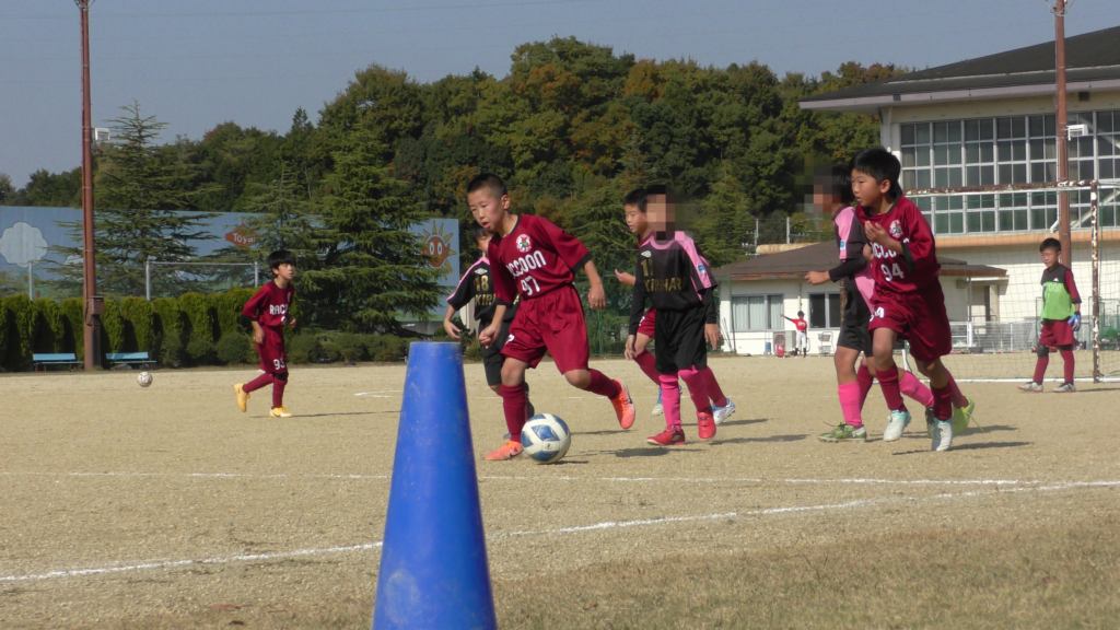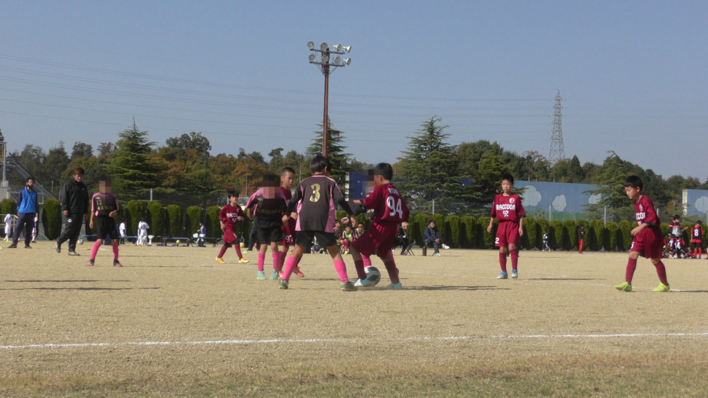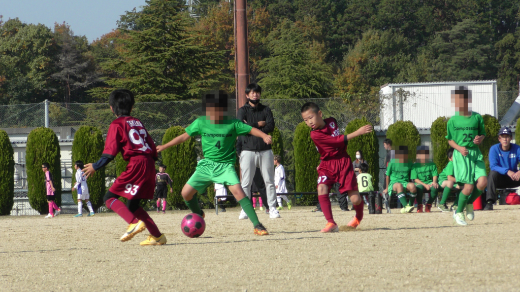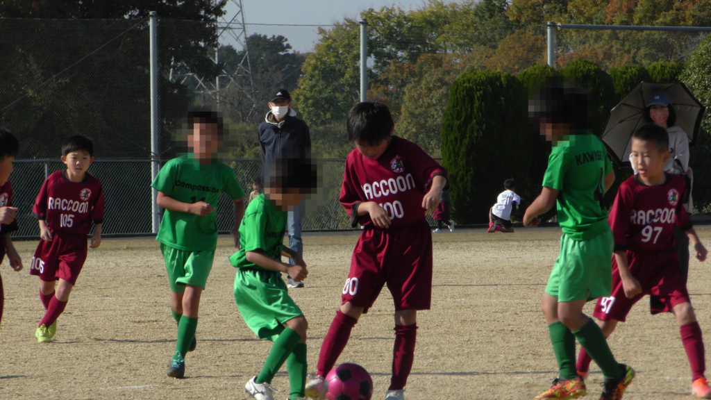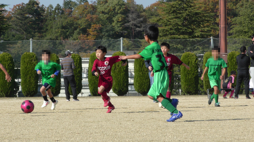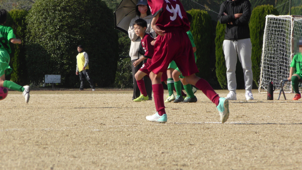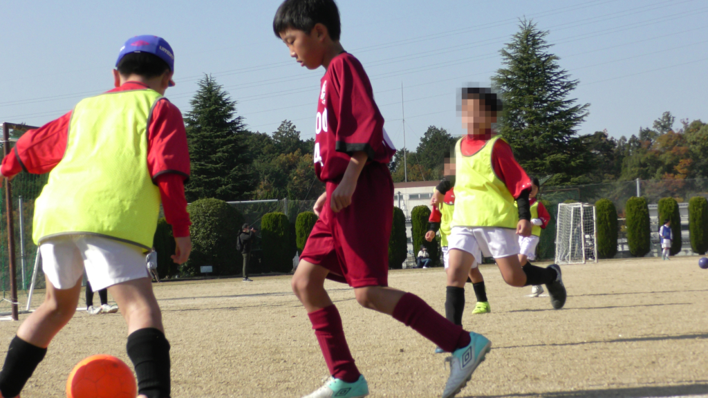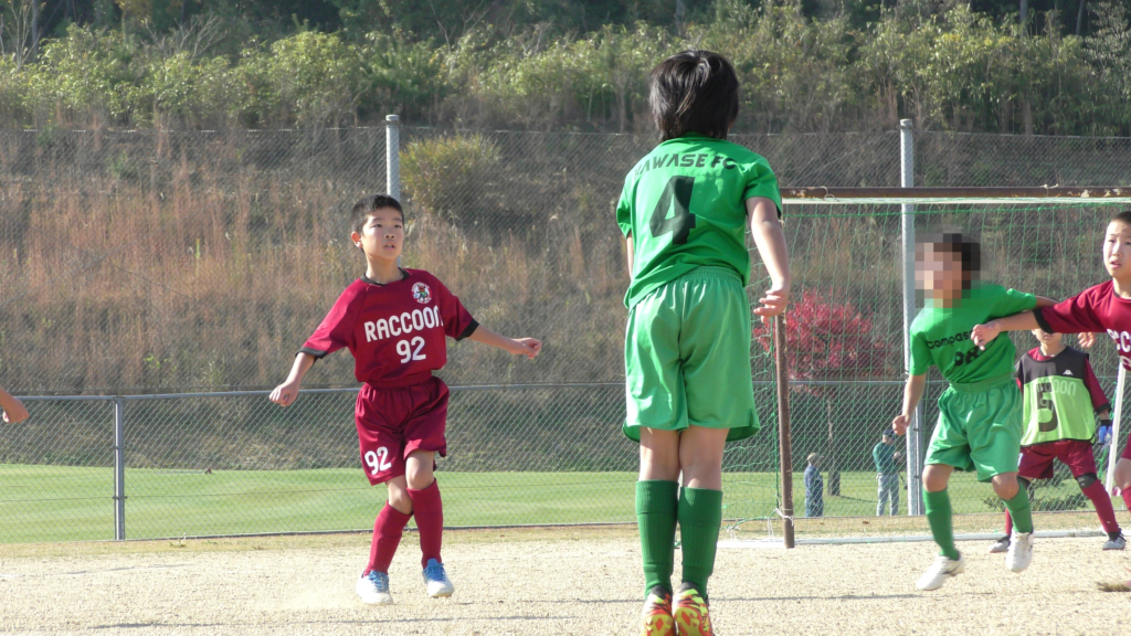 最初は、ボールを取りに行く姿はありましたが、簡単に抜かれたり、体を当ててボールを取ろうとするが仲間のフォローが遅く相手チームに自由にさせてしまう場面がありました。