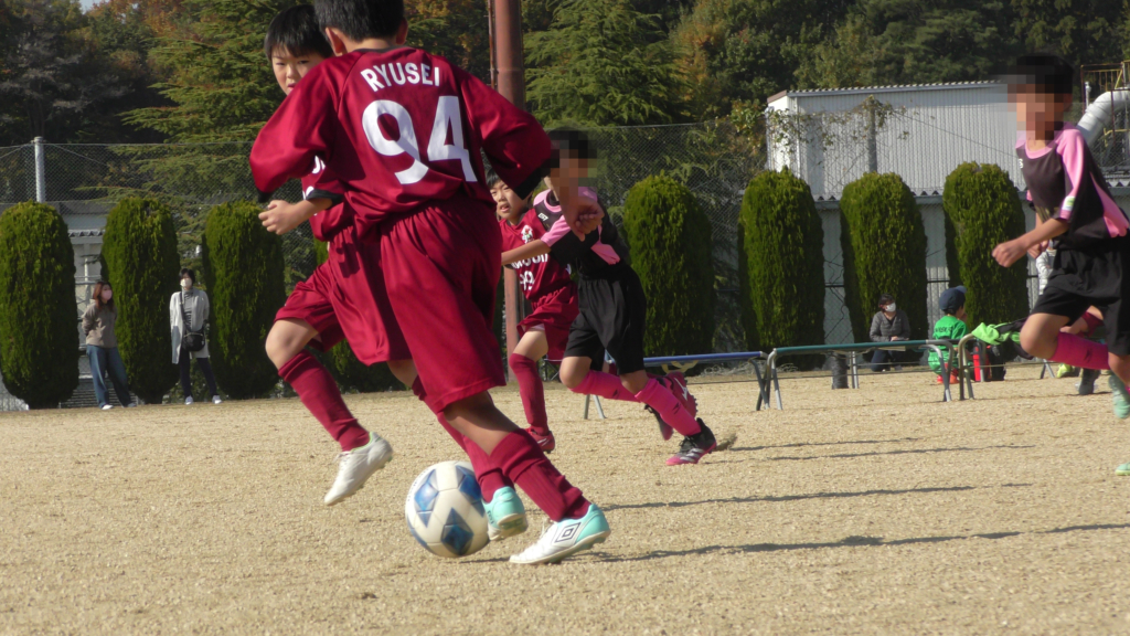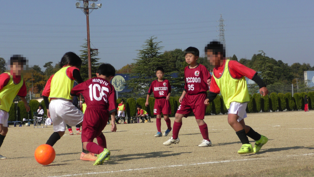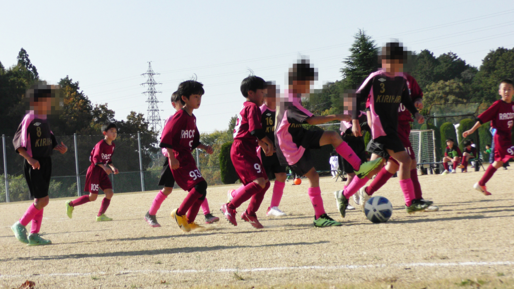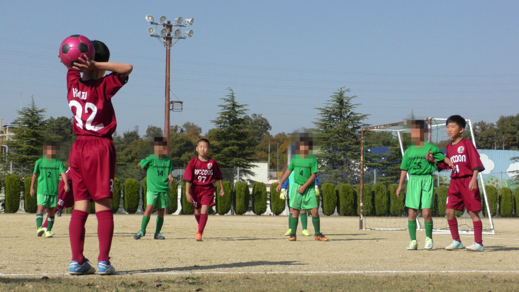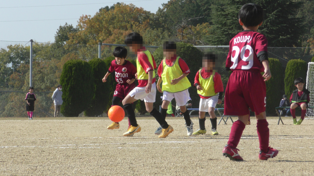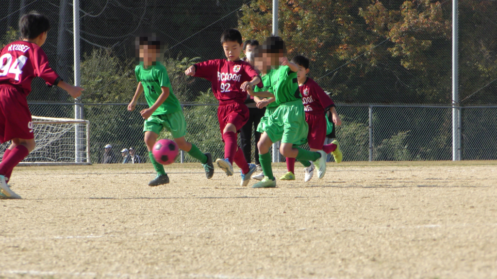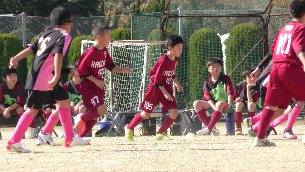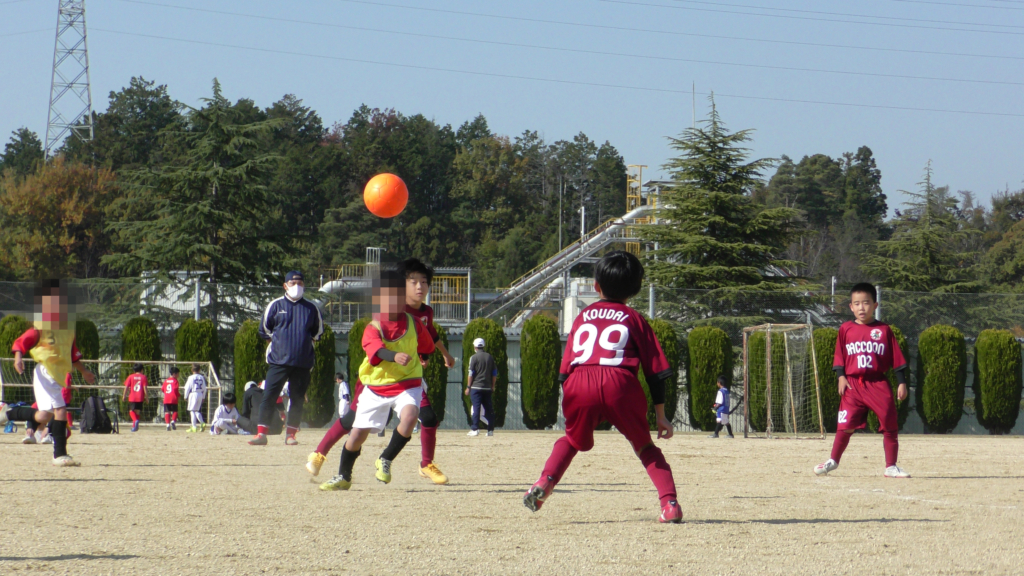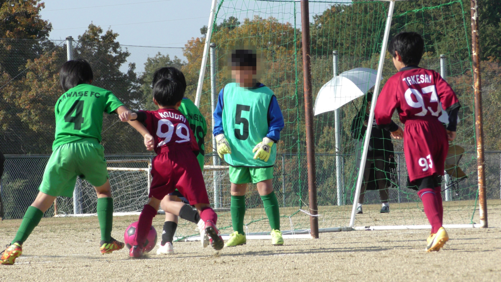 最初は、ボールを取りに行く姿はありましたが、簡単に抜かれたり、体を当ててボールを取ろうとするが仲間のフォローが遅く相手チームに自由にさせてしまう場面がありました。