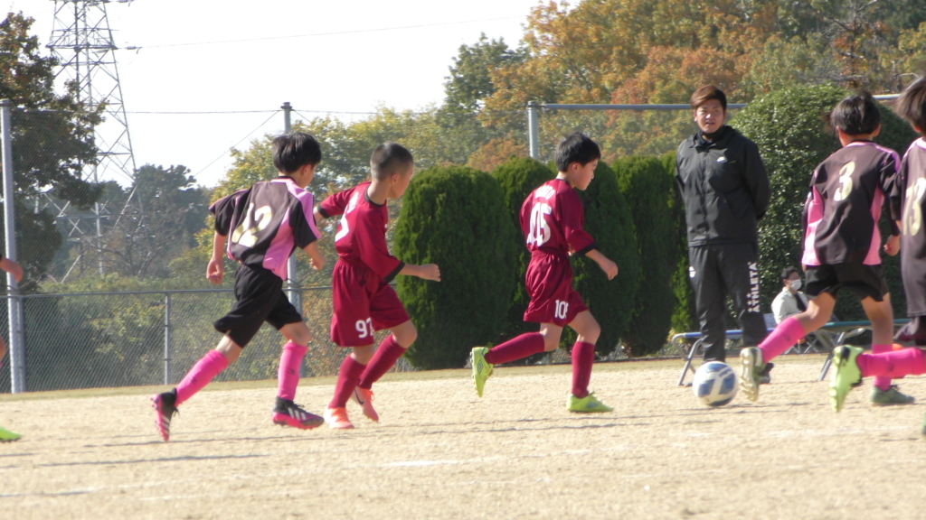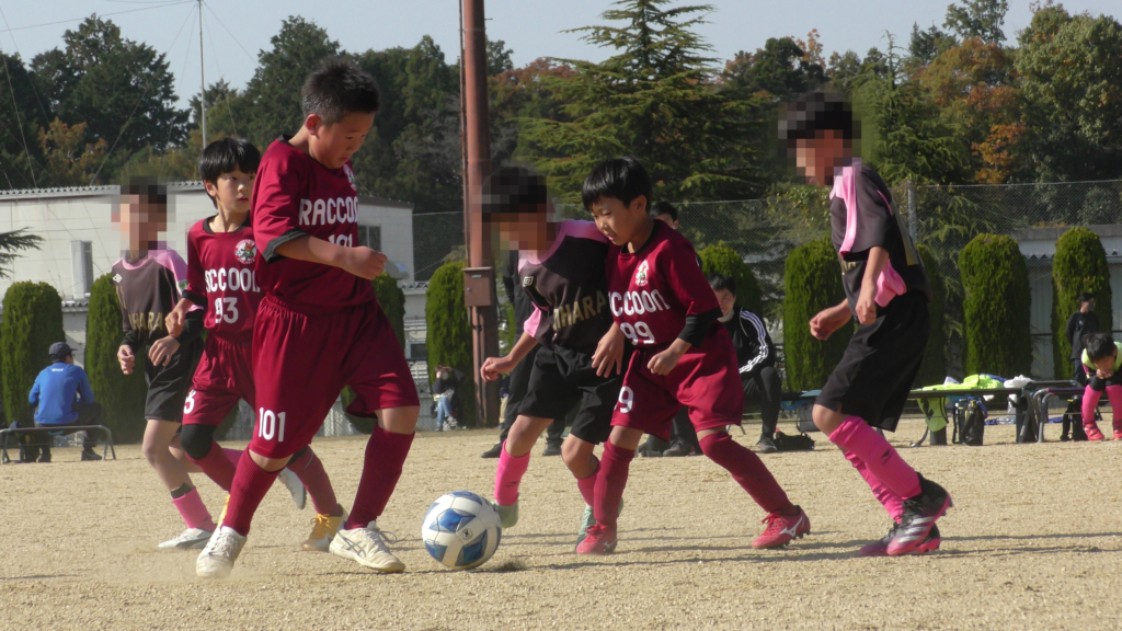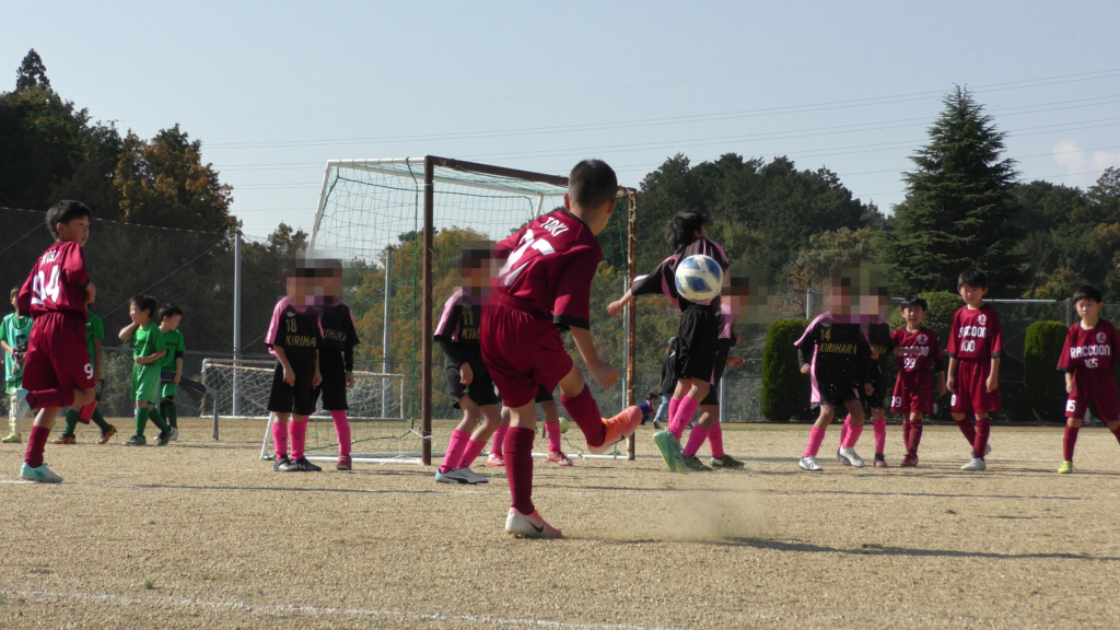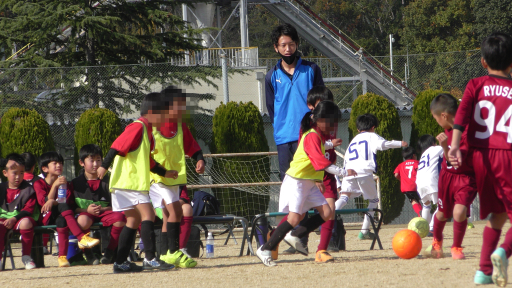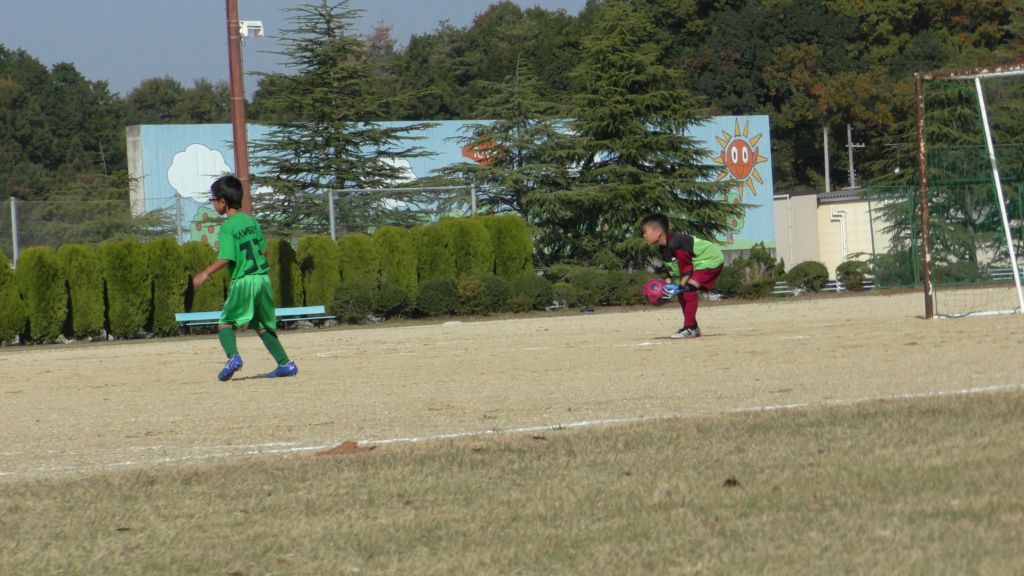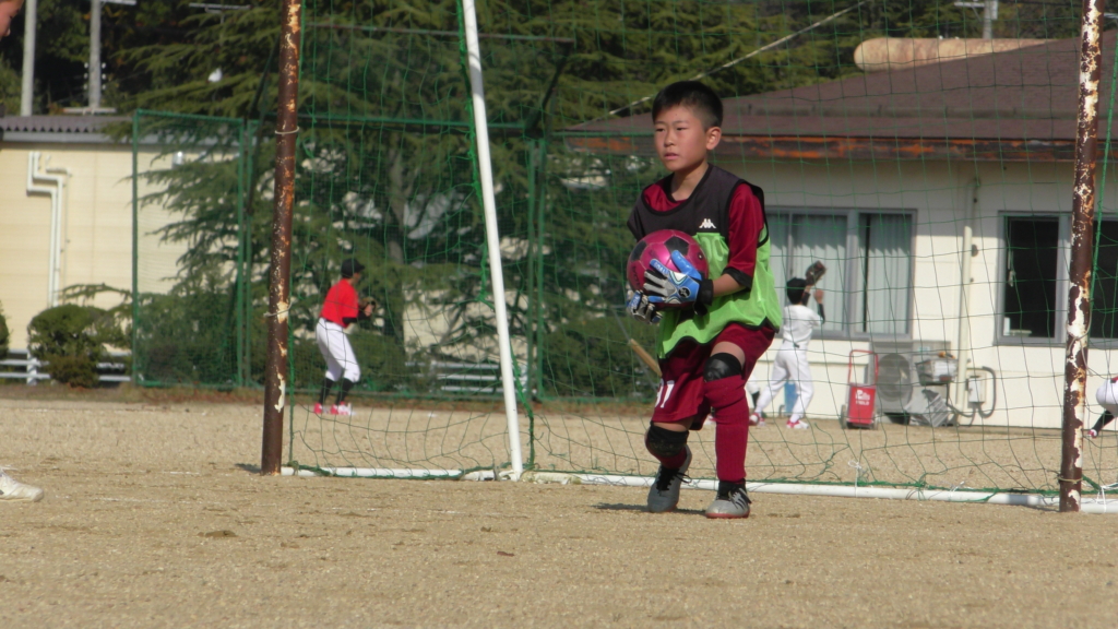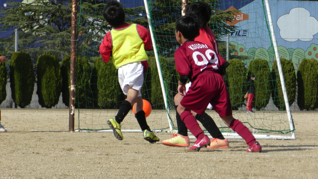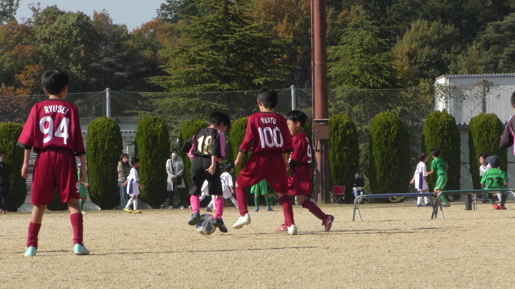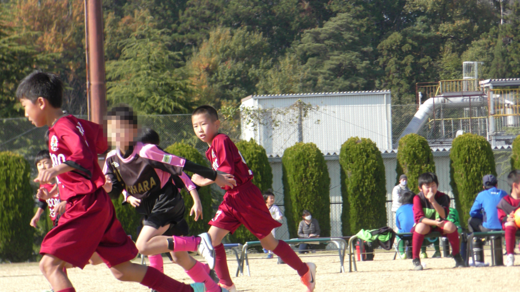 最初は、ボールを取りに行く姿はありましたが、簡単に抜かれたり、体を当ててボールを取ろうとするが仲間のフォローが遅く相手チームに自由にさせてしまう場面がありました。
