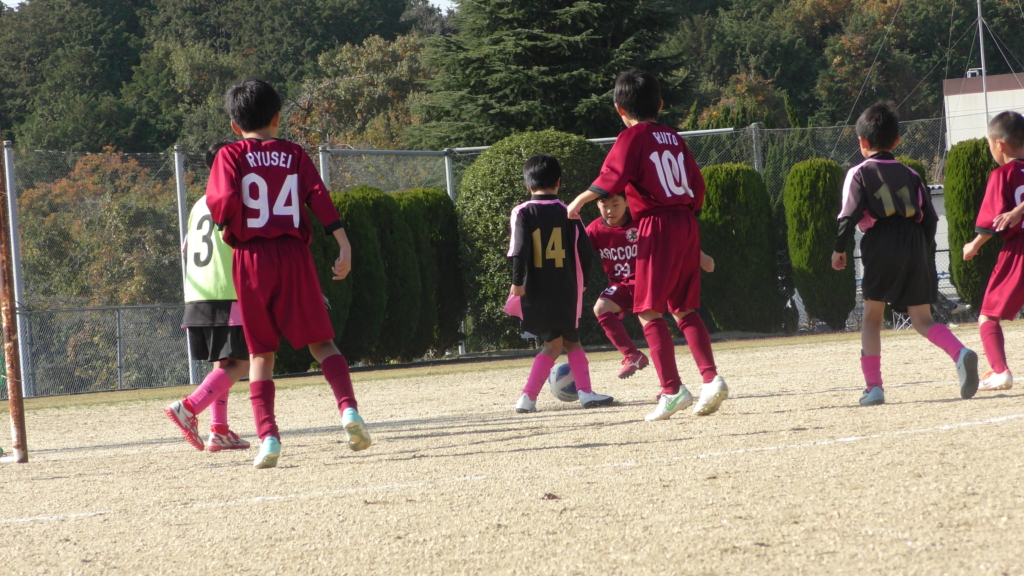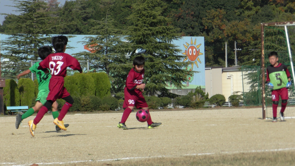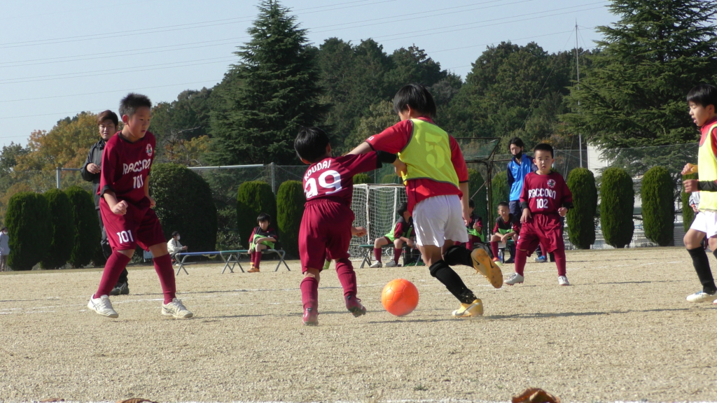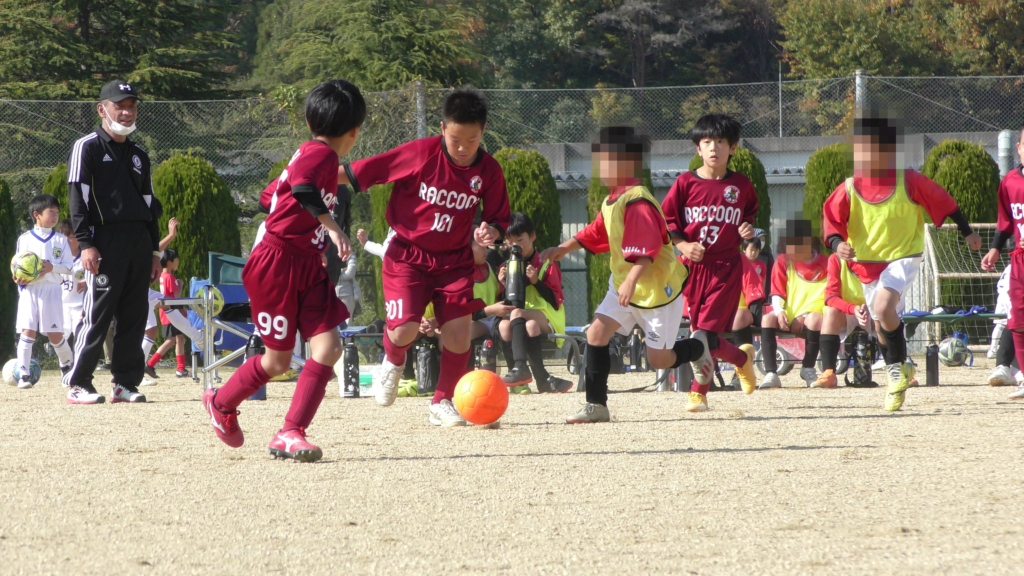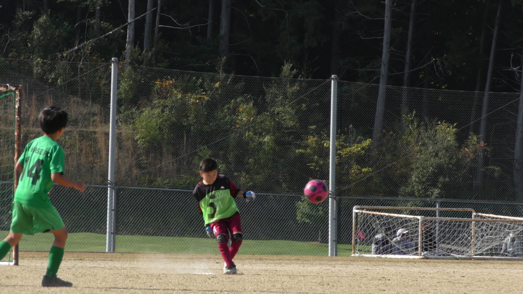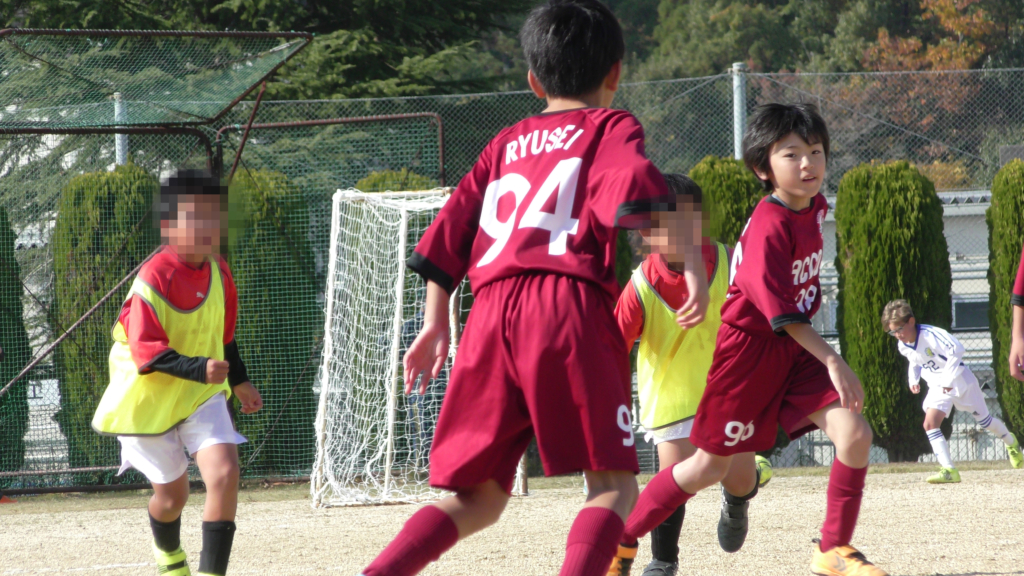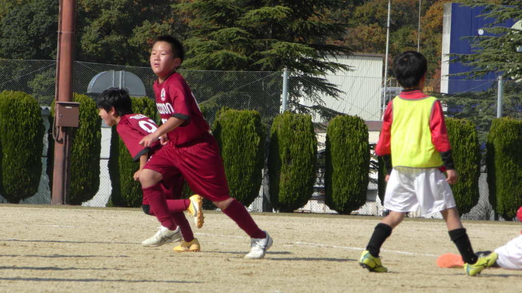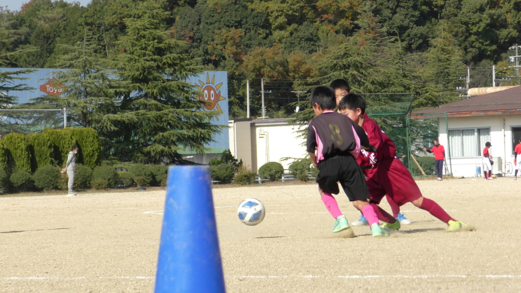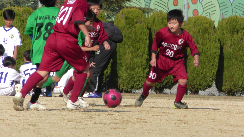 最初は、ボールを取りに行く姿はありましたが、簡単に抜かれたり、体を当ててボールを取ろうとするが仲間のフォローが遅く相手チームに自由にさせてしまう場面がありました。