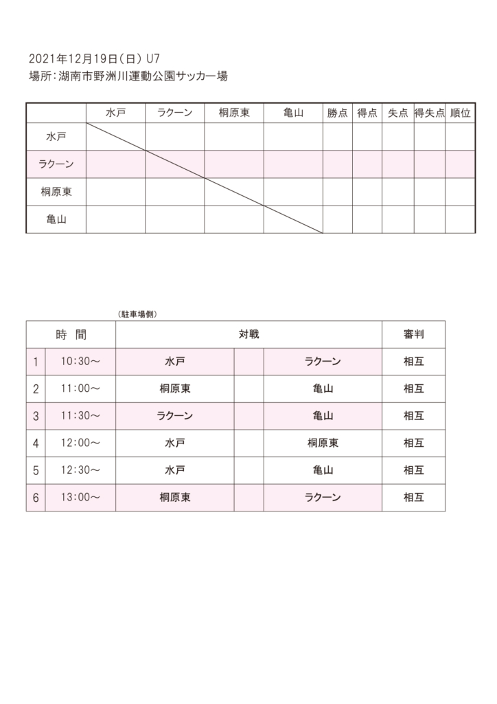 ※ラクーンTシャツを持ってない方はビブスを着て試合を行います。