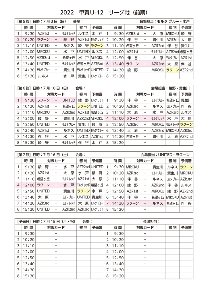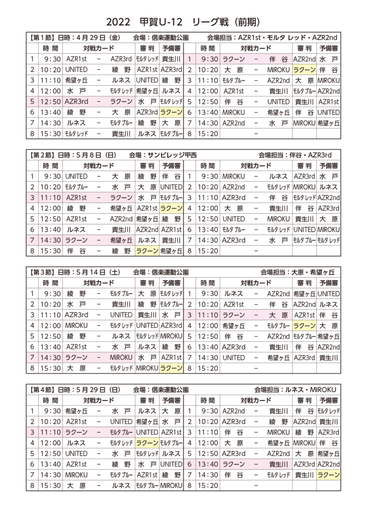 さて、全日本U-12リーグ戦 前期の詳細を下記の通りお知らせいたします。