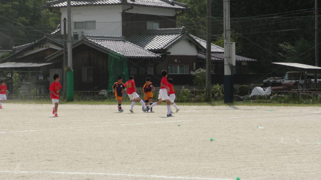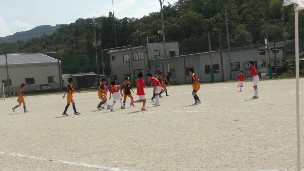 今回は3年生から6年生の2チームに分けて試合を行い、6年生、5年生チームがU-12、4年生、3年生がU-10で、U-12が15分×5本、U-10が12分×4本試合を行いました。初めは少し曇っていて時々小雨が降っていましたがだんだん晴れてきてやはりめちゃくちゃ暑かったです。😅