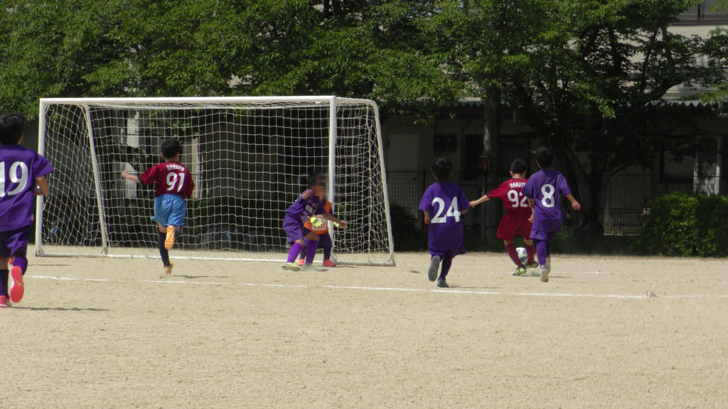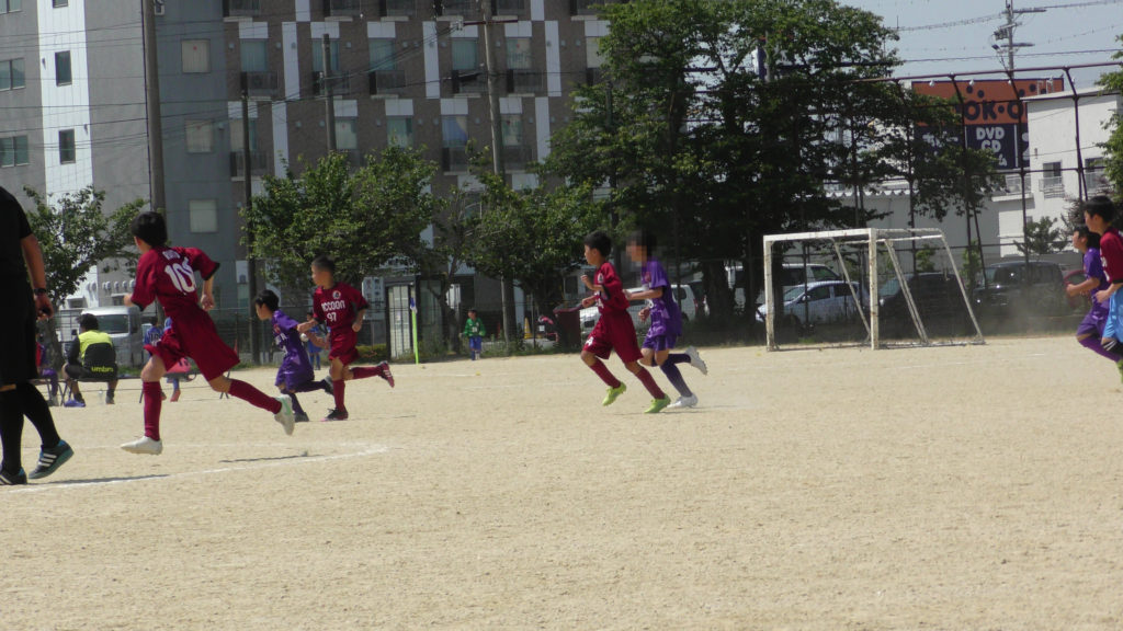 2試合目は1試合目より動きが良かったです。2試合あくのでお昼ご飯タイムにしました。嬉しそうにご飯を食べる子どもを見るとこちらまで嬉しくなります😀🍙余談ですが、おにぎりタイムはおにぎりを食べることが最優先です。先に果物、ゼリー等はやめるように子どもたちに伝えました。果物、ゼリーでお腹が膨れると主食のおにぎりがはいりません。おにぎりが食べられない=熱中症のリスク大😱まずは熱中症にならないようにしっかりエネルギーを取ってから水分、塩分を昼食の時は心がけてほしいことを伝えました😅気持ちを切り替えて3試合目今日ずーっと言い続けてきたことが少しづつではあるが成長が見えた一戦でした。