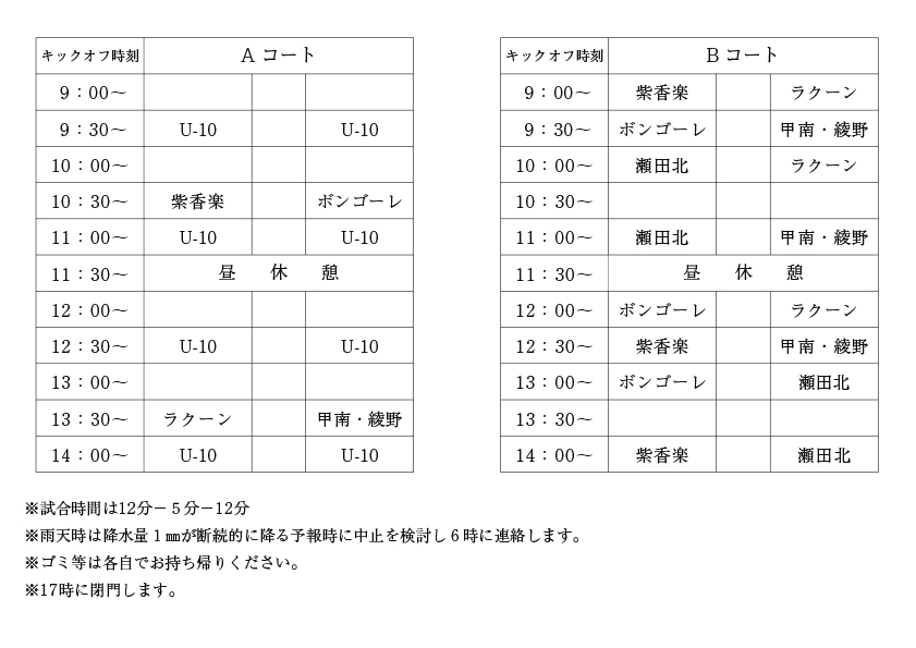 ※暑い中試合を行いますので、濡れても良いタオルも持って来てください。