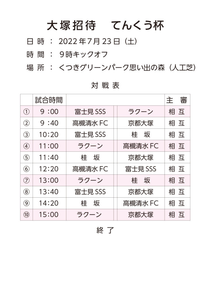 さて、大塚招待の詳細を下記の通りお知らせいたします。