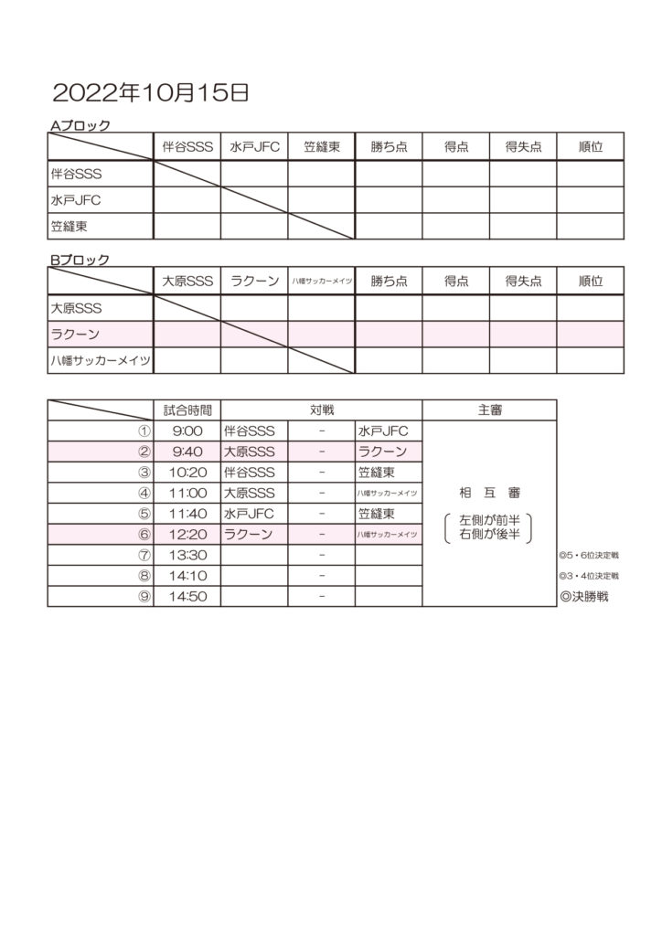 もちもの:ユニフォーム(FP・GK:エンジ)、スパイク、ボール、すね当て、タオル、すいとう(多め)、着替え、おにぎり