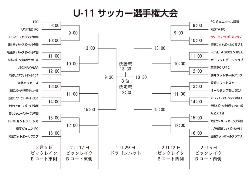 ※試合開始1時間前に選手チェックが行われます。遅刻しないでください。