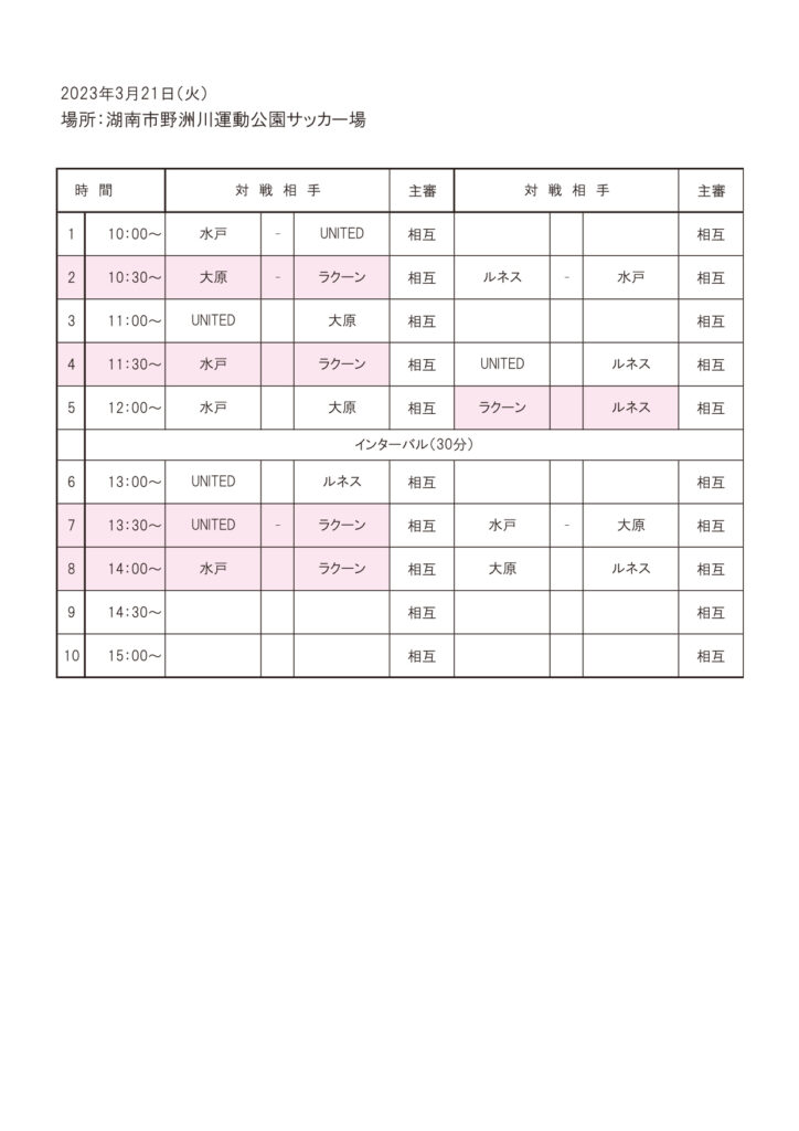 ※試合当日、検温、体調の確認などしてください。