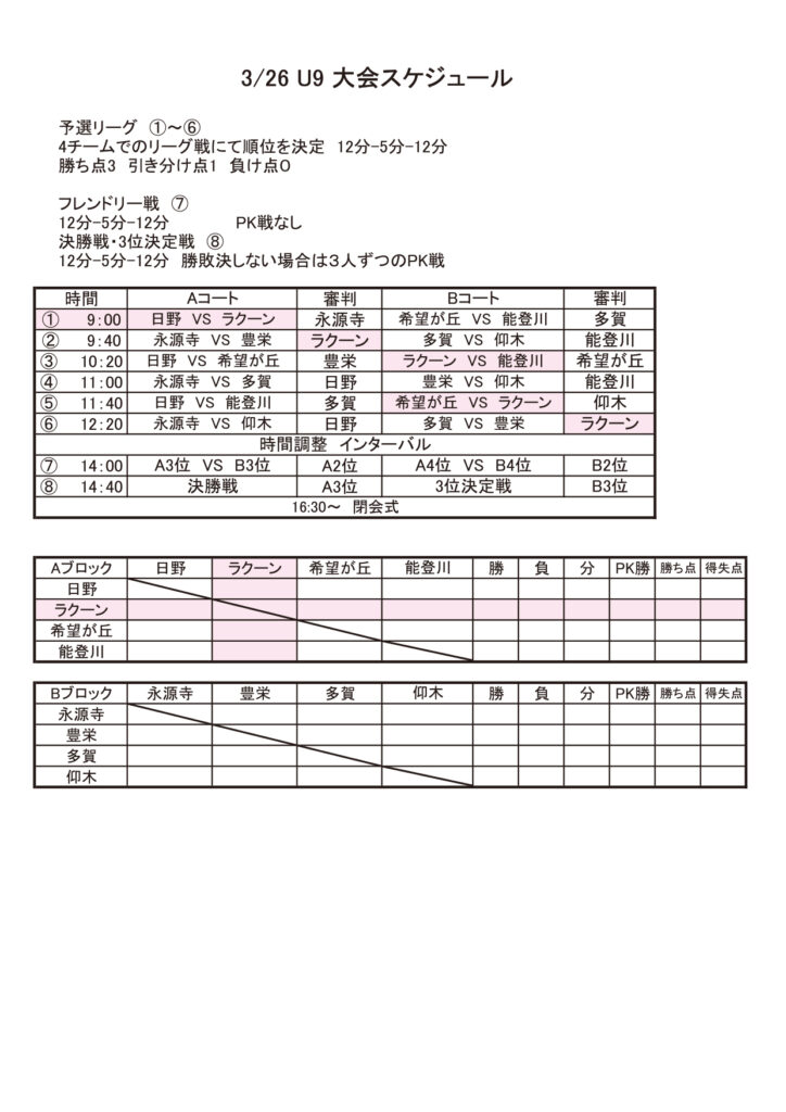 さて、U-9日野招待の詳細を下記の通りお知らせいたします。