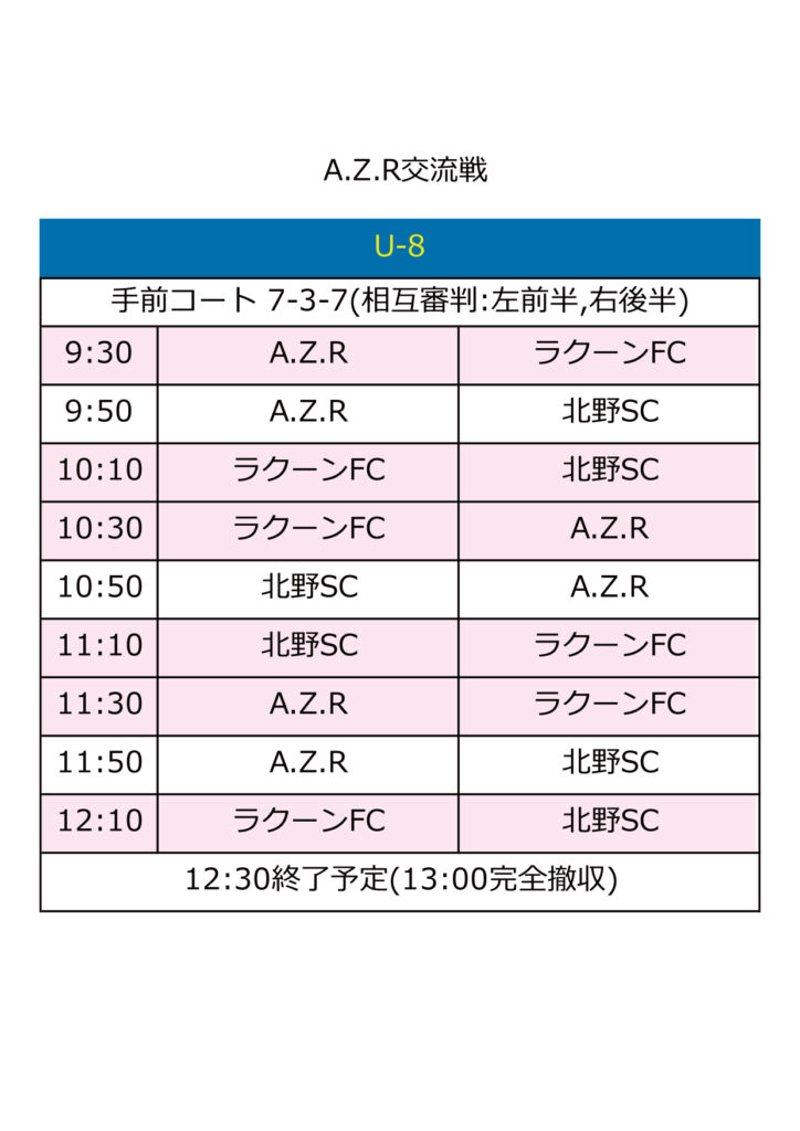 さて、U-8トレーニングマッチの詳細を下記の通りお知らせいたします。