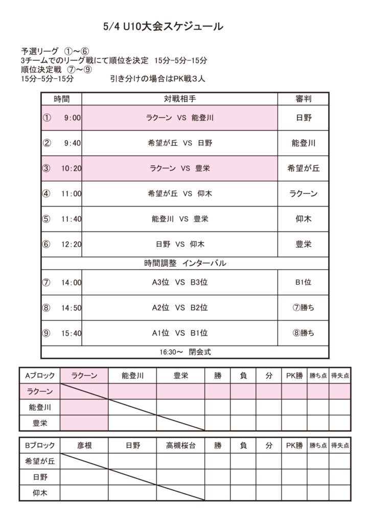 さて、U-10日野とのトレーニングマッチの詳細を下記の通りお知らせいたします。
