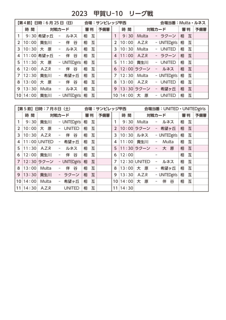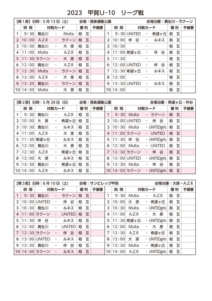 さて、U-10リーグ戦の詳細を下記の通りお知らせいたします。