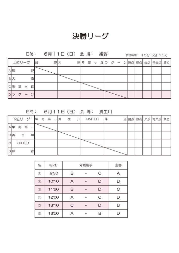 ※試合当日、検温、体調の確認などしてください。