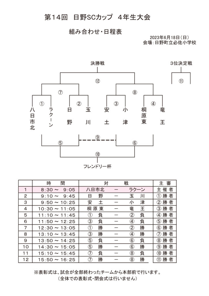 さて、U-10日野招待の詳細を下記の通りお知らせいたします。