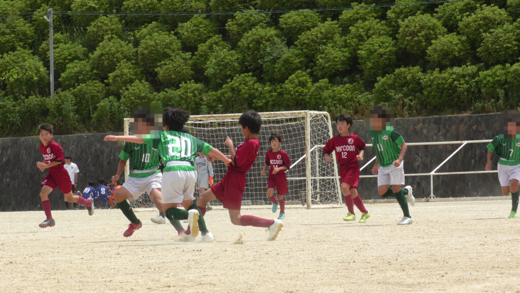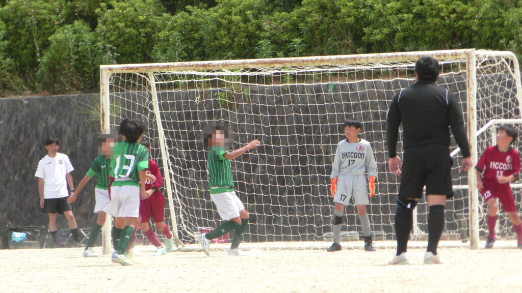 1試合目はラクーン同士の戦い。初めは、しっかり前からプレスができておりいい試合内容でした。ただ試合時間20分が続かない。前からプレスができていたのはたった3分。これではいい試合をしていても結果残念な結果に終わる。まずはいいプレーはできているのだらから良いプレーを続かせましょう😀ただ失点も1点、2点、3点までは集中力が持ちますが、4点目以降になると集中力が欠けてしまうので、4点目以降の失点が早くなるので、そこを頑張って集中しましょう。