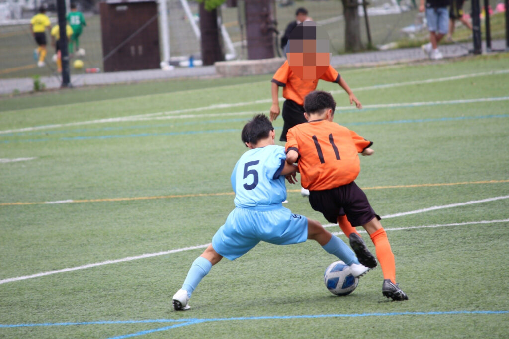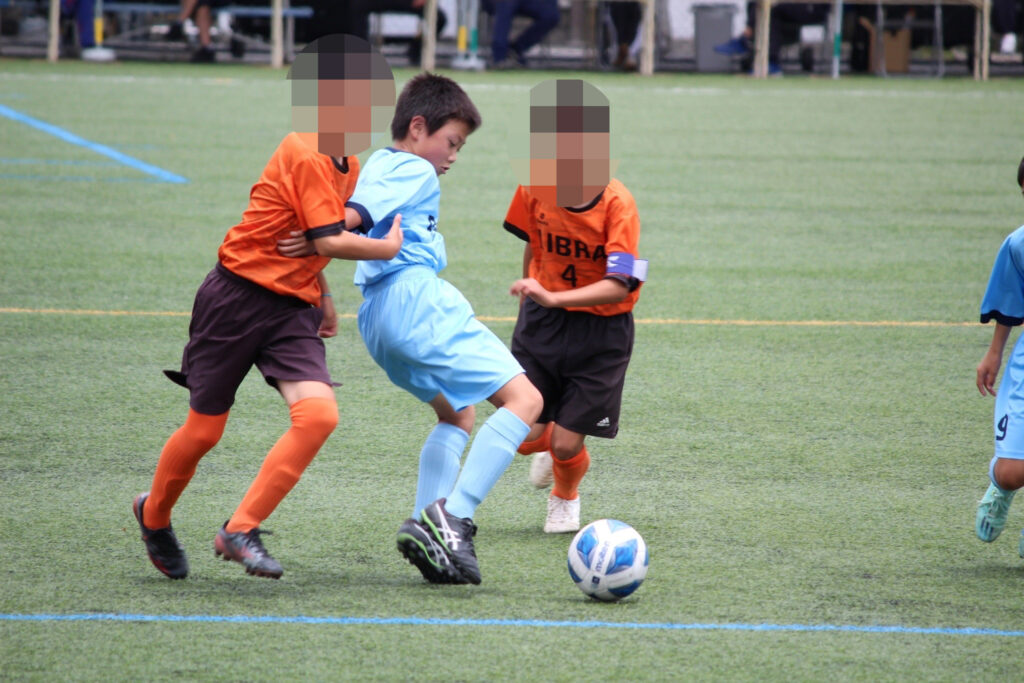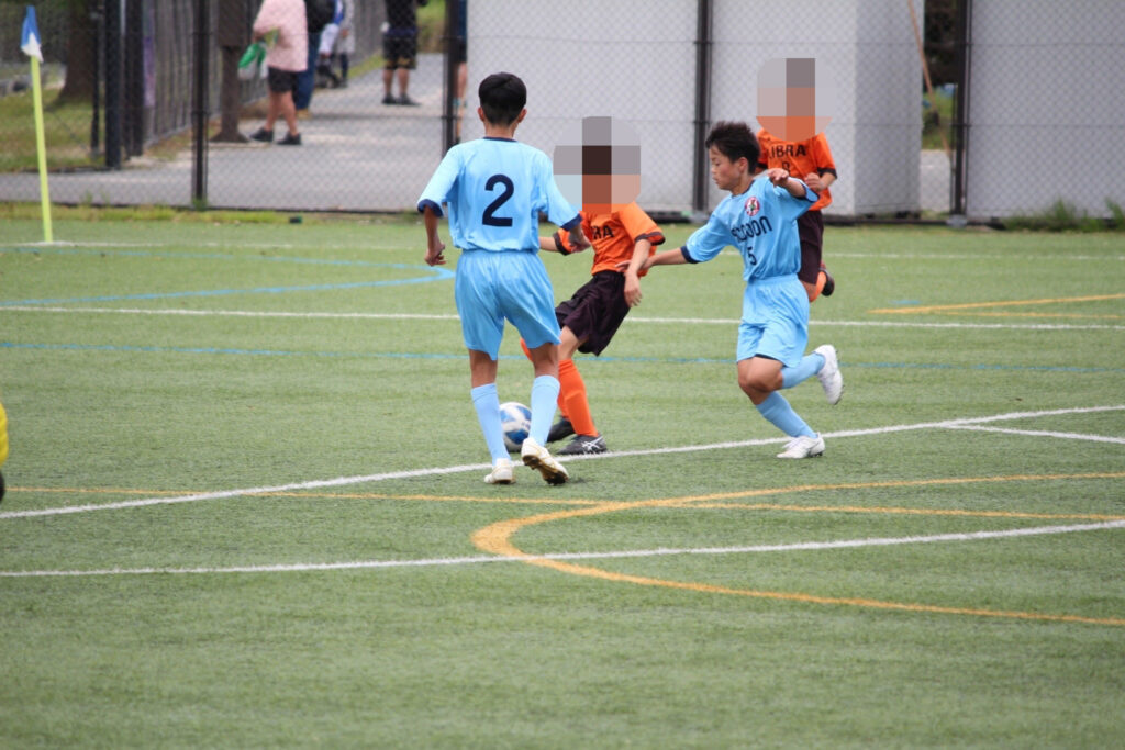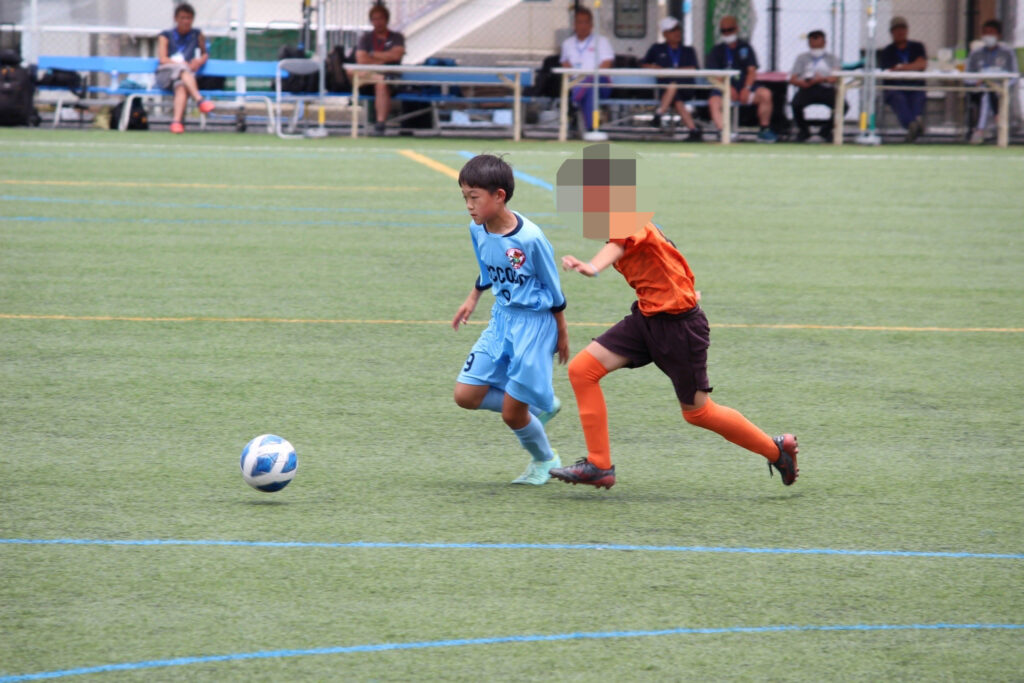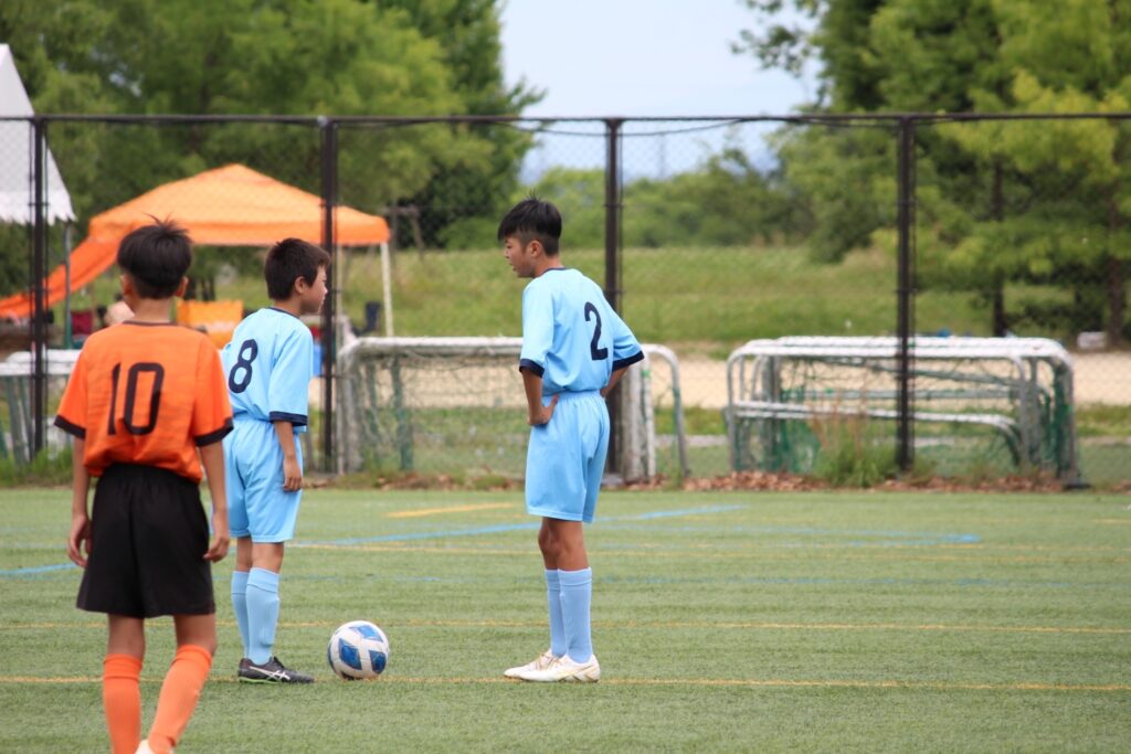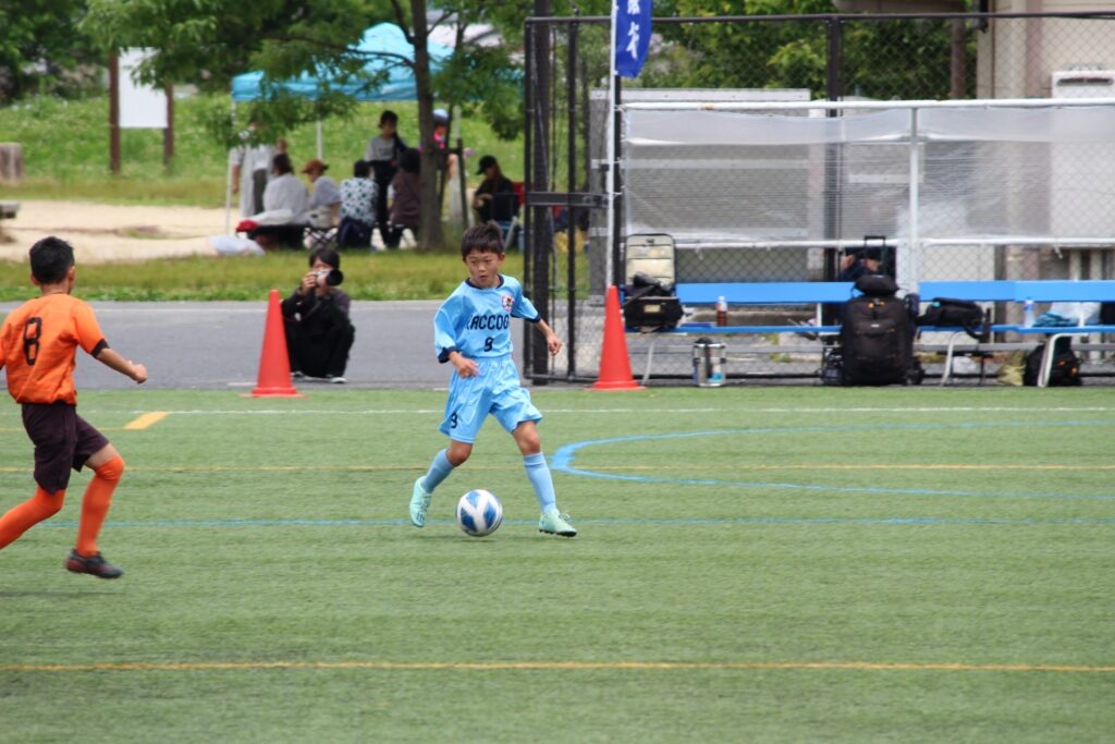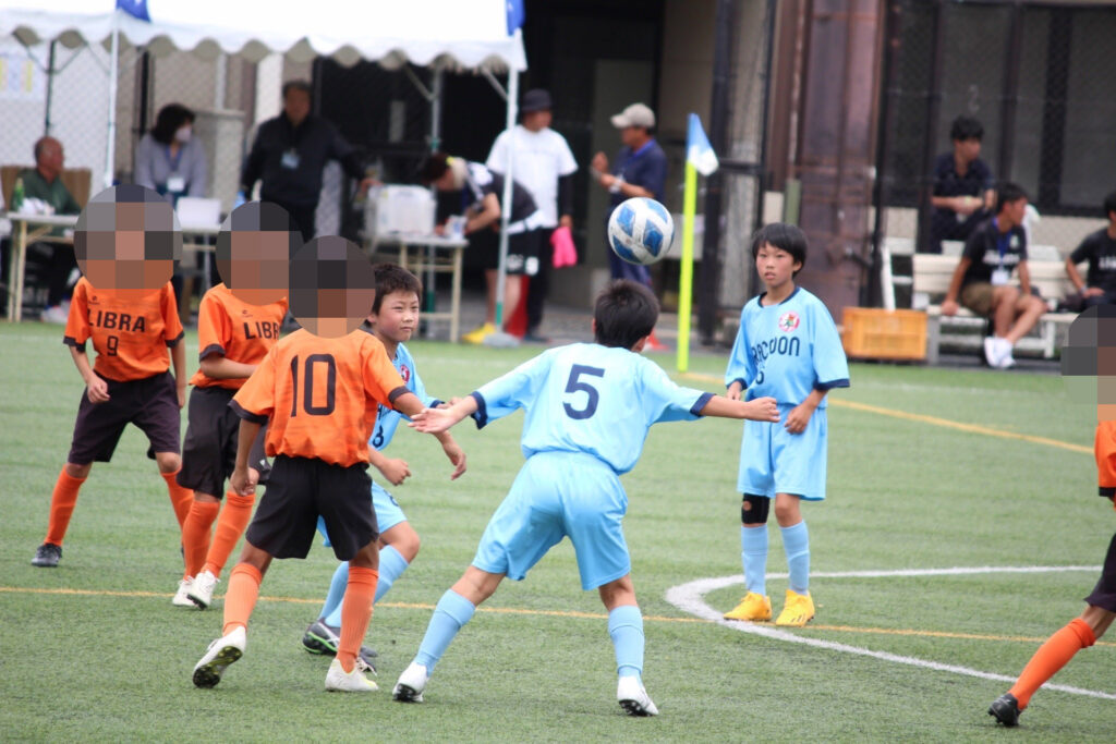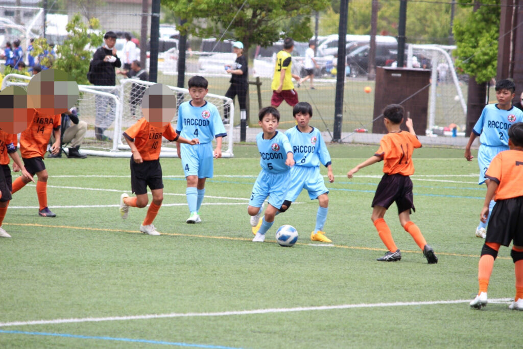 今年からコロナ禍も終わったので、選手同士の挨拶、円陣、と全てが解禁になりました。ラクーンFCが甲賀ブロックに加入させてもらってすぐにコロナが始まりました。当時この子たちは小学校2年生の冬からコロナと付き合い始め、3年生、4年生、5年生と本来みる光景(選手同士の挨拶、握手、円陣)が見れなかったのです。なので試合前から色々な行動に驚き、おどおどしながら審判の指示に従い行っていました。コーチもそこを子どもたちに教えていなかったことが汚点でした😫