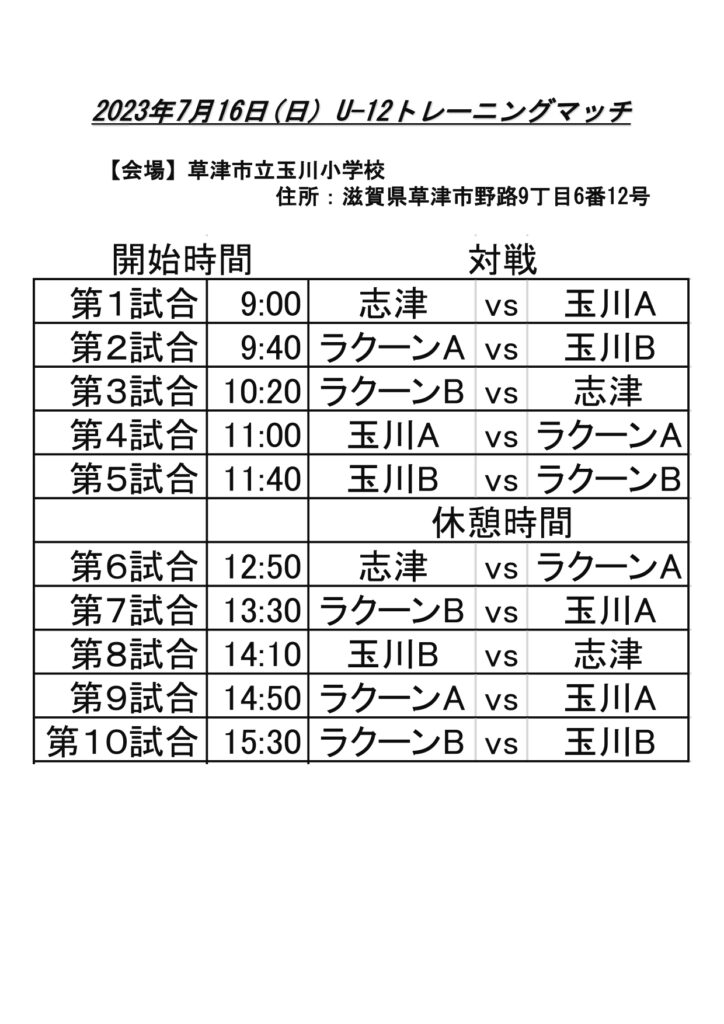 さて、玉川トレーニングマッチの詳細を下記の通りお知らせいたします。