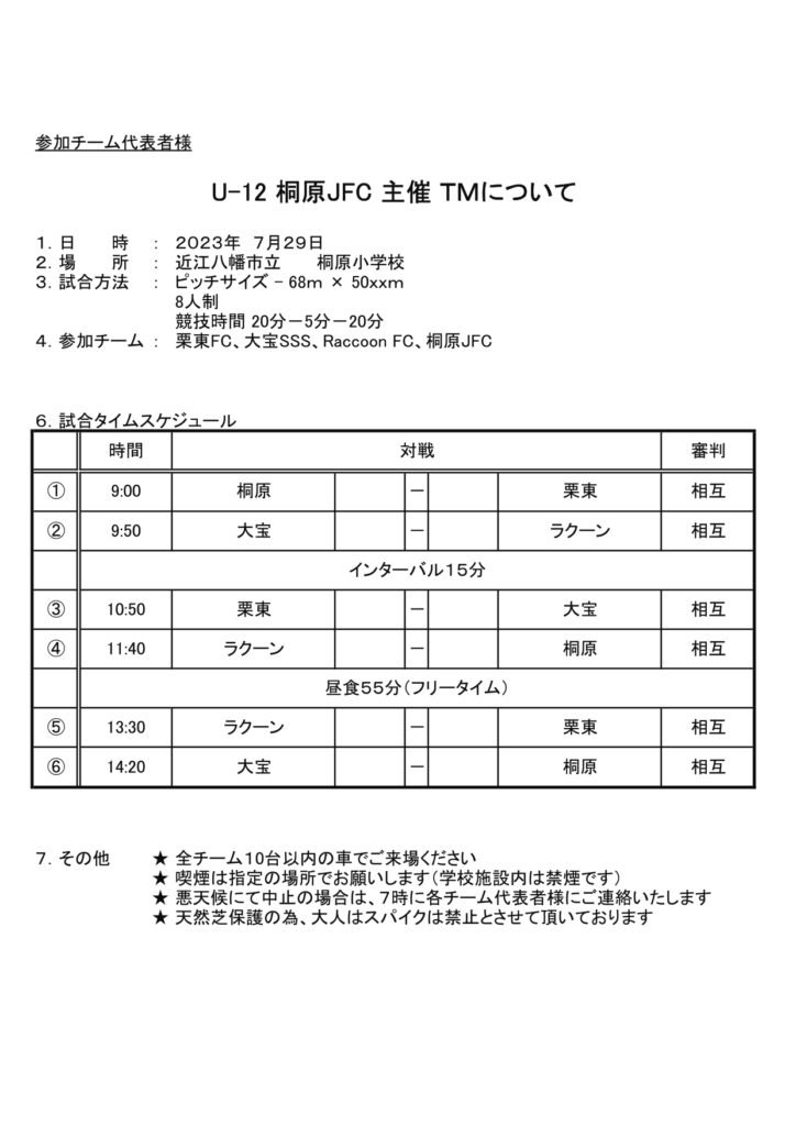 さて、U-12トレーニングマッチの詳細を下記の通りお知らせいたします。