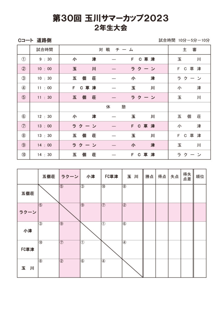 ※ラクーンTシャツを持っていない子はビブスを着て試合を行いなす。