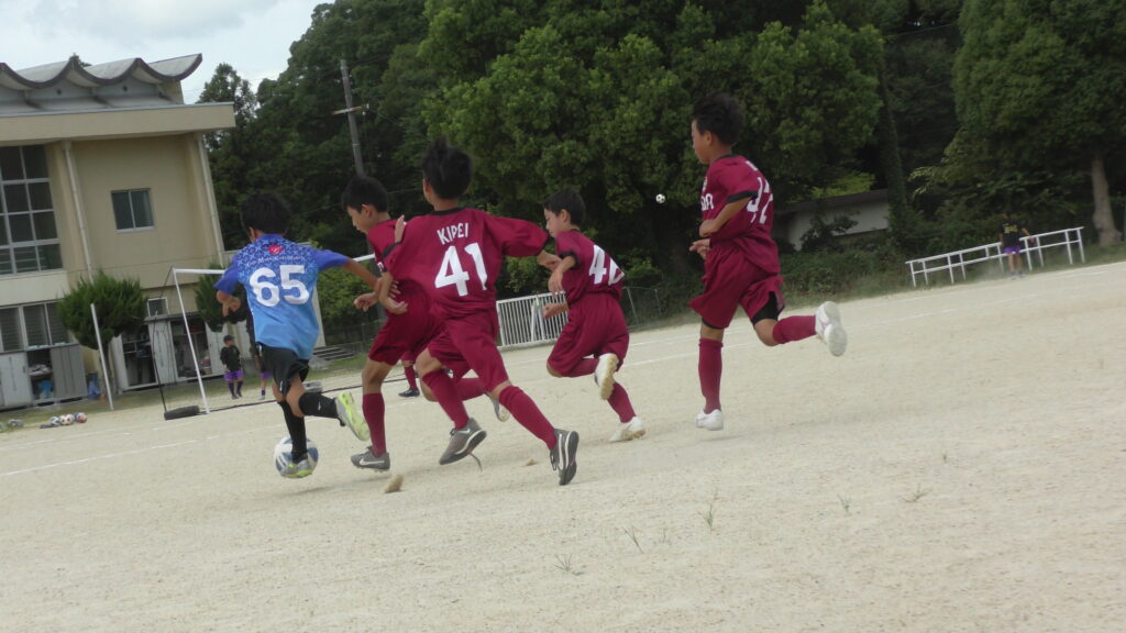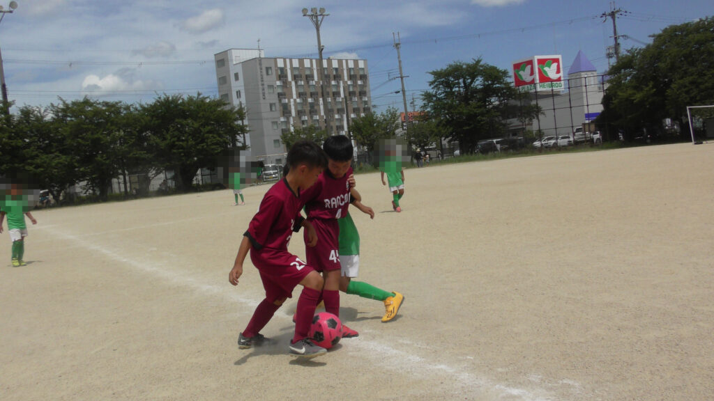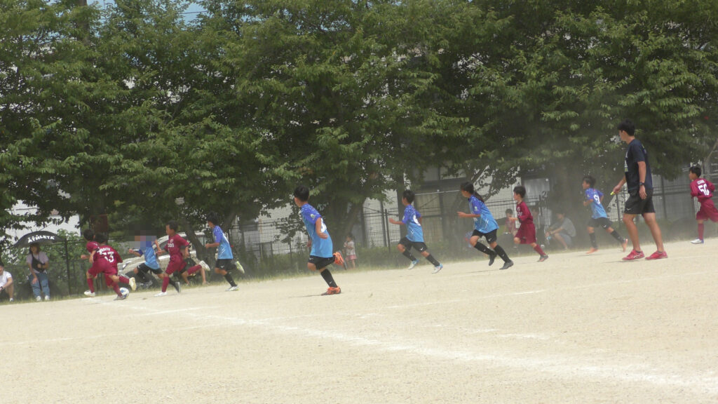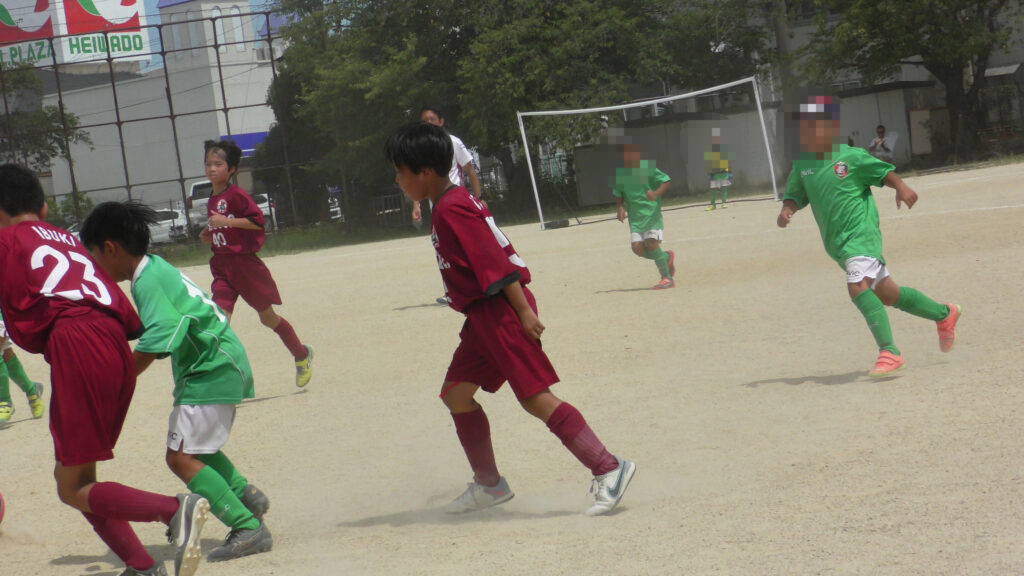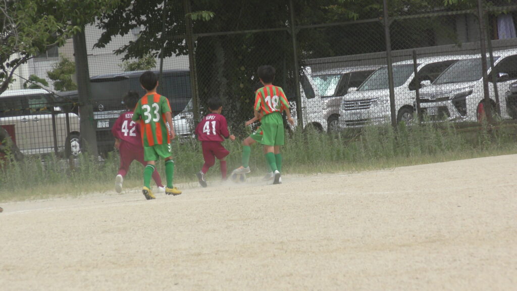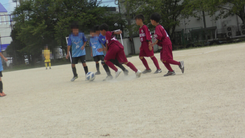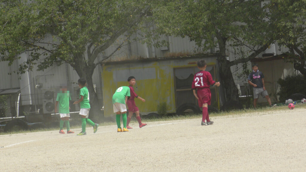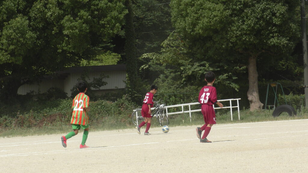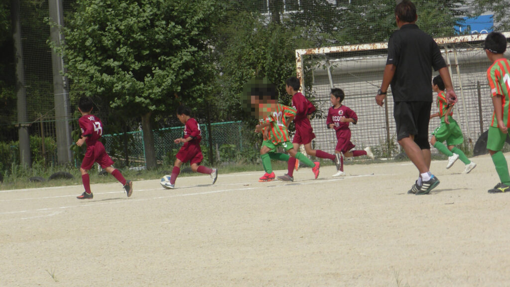 1日目・2日目・3日目とDFを中心に教えた試合、DFがそこそこ出来ると、攻められてもボールを奪った時、また、奪われた時に攻守が早くなるからだ。