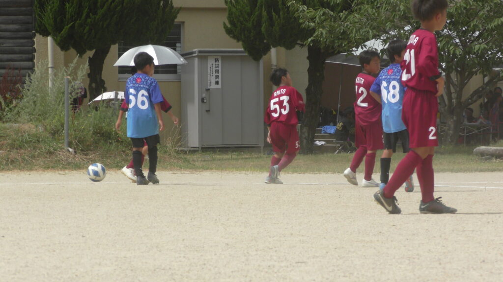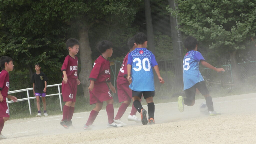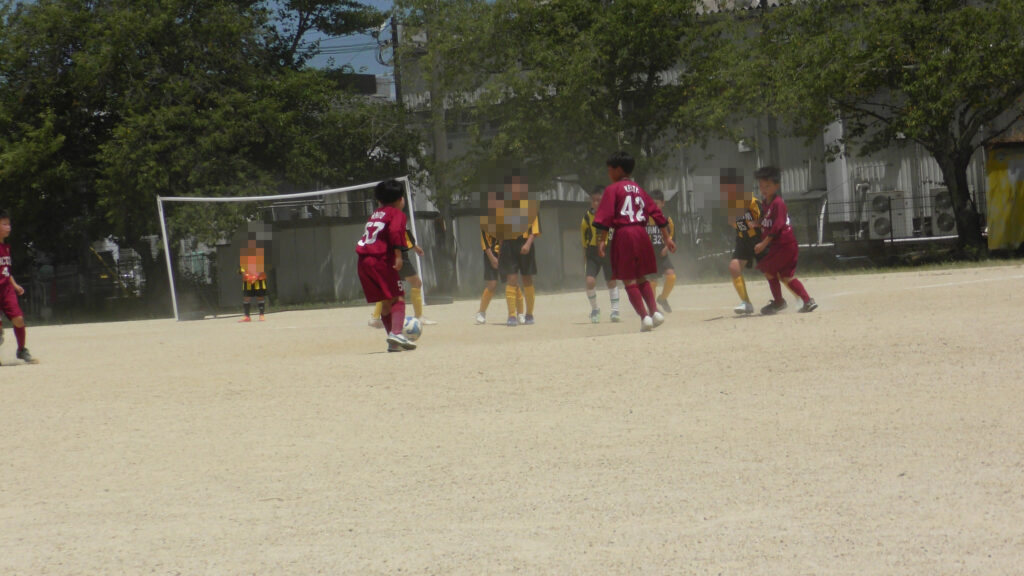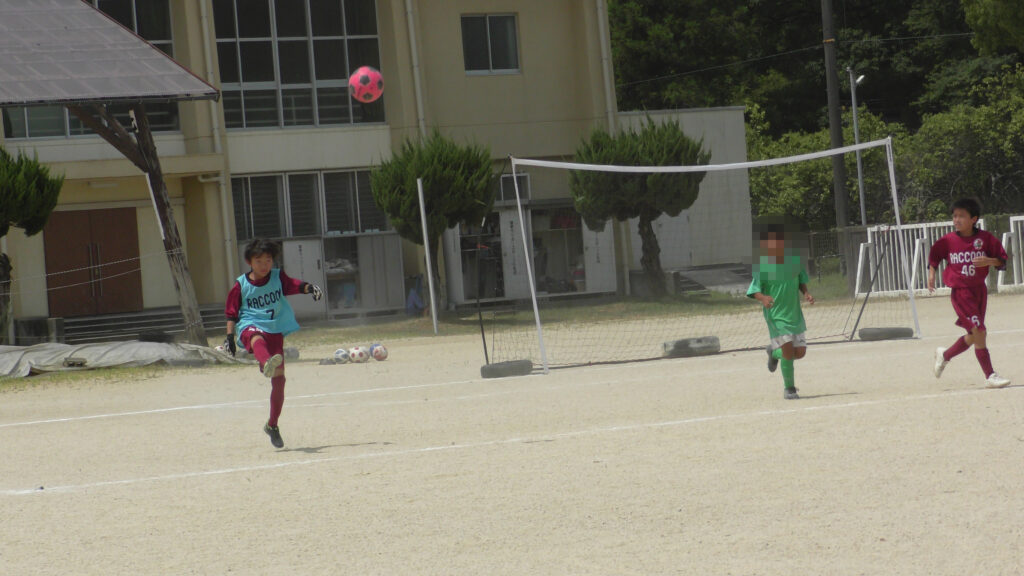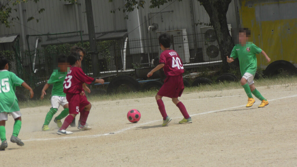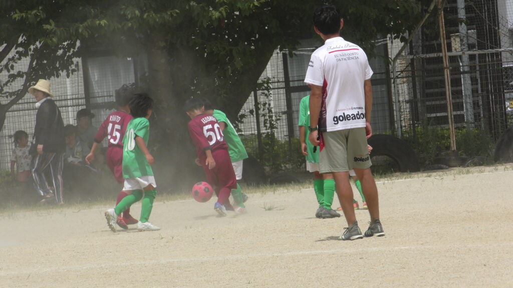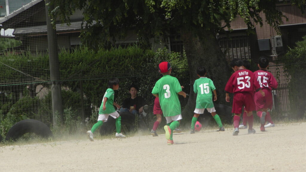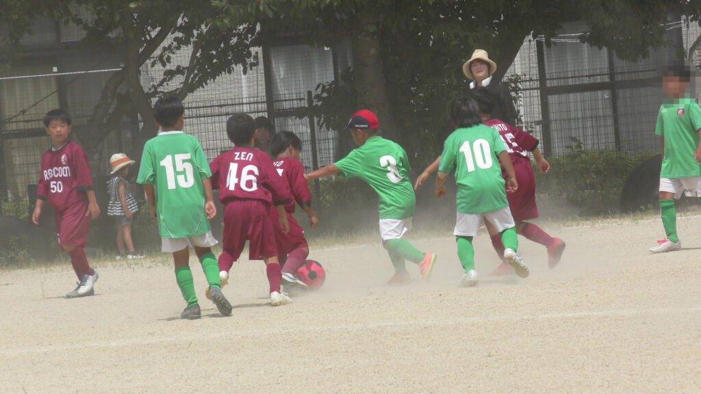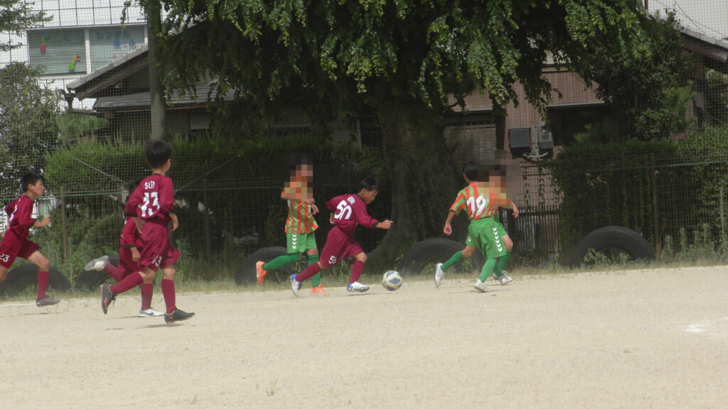 1日目・2日目・3日目とDFを中心に教えた試合、DFがそこそこ出来ると、攻められてもボールを奪った時、また、奪われた時に攻守が早くなるからだ。