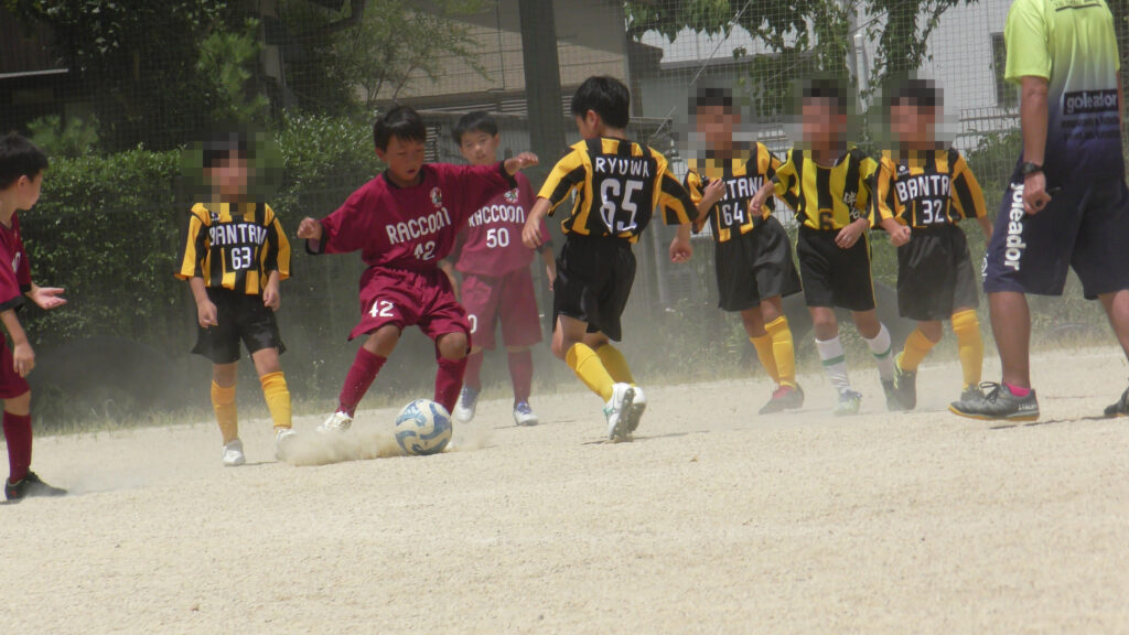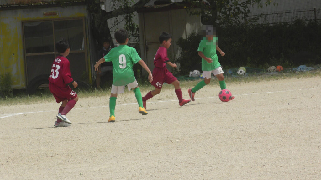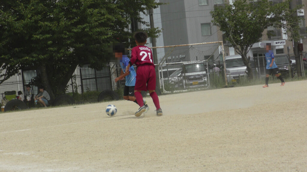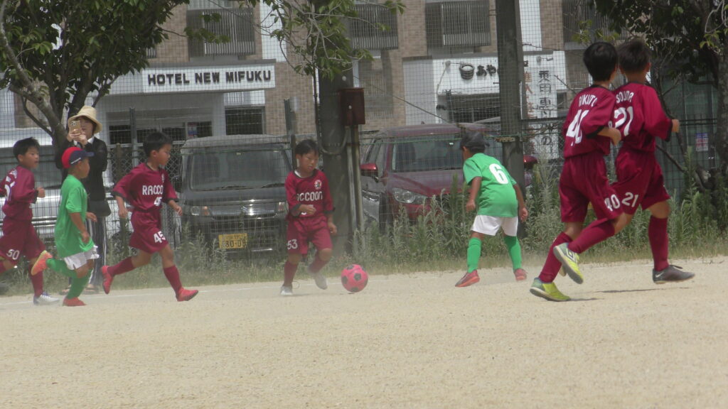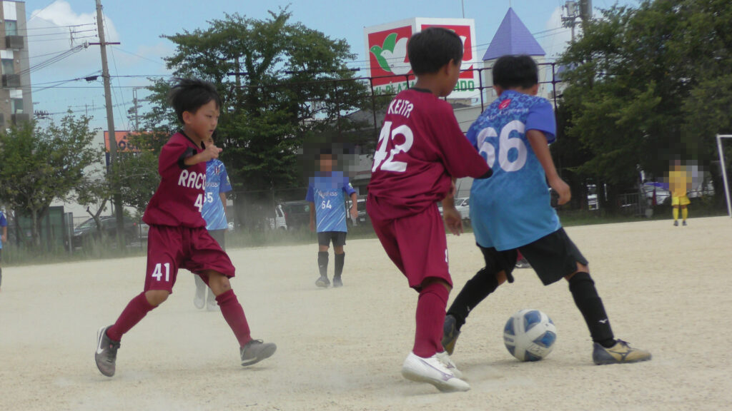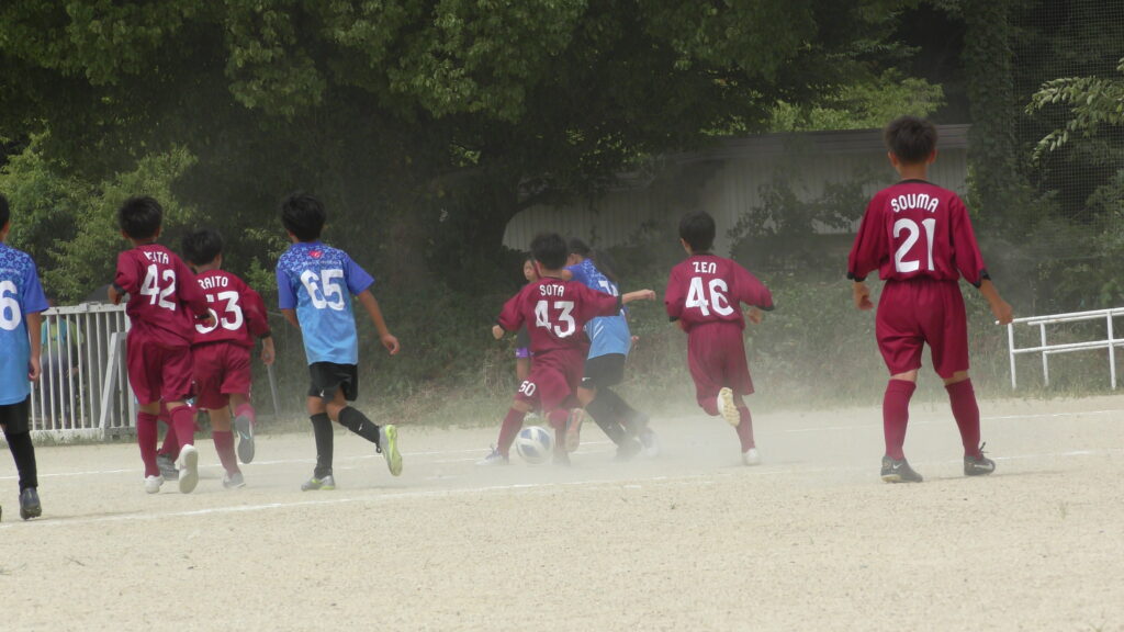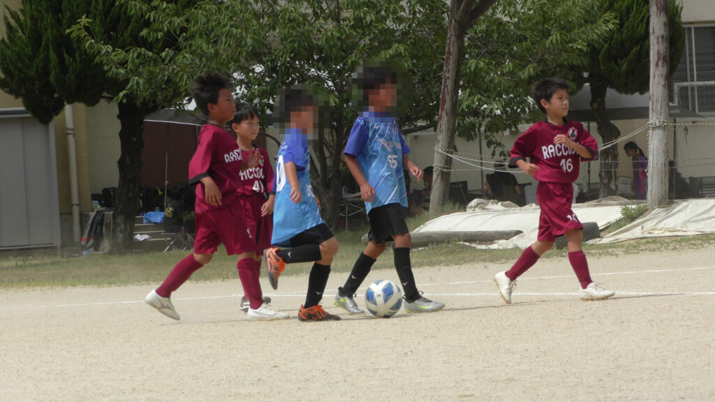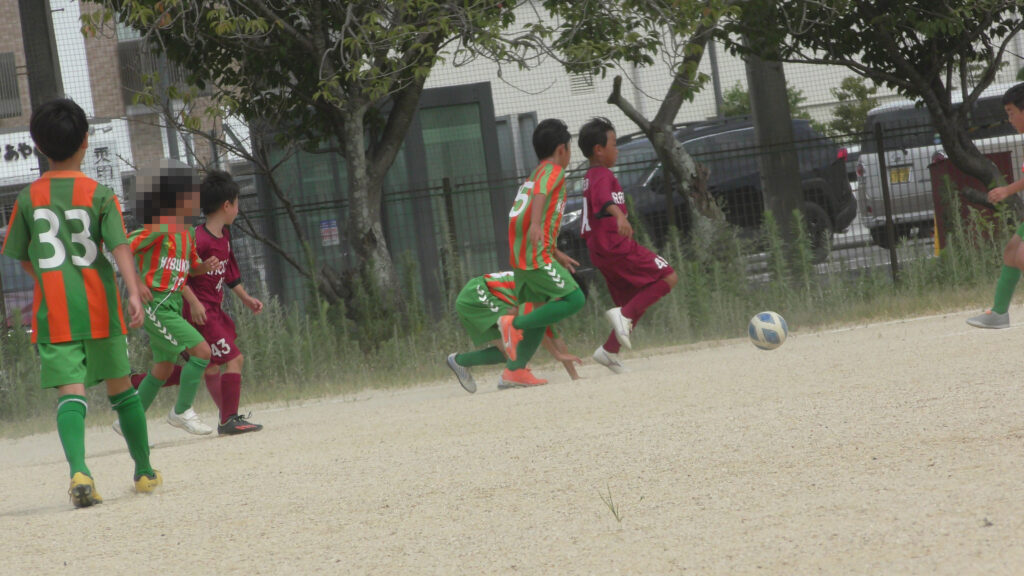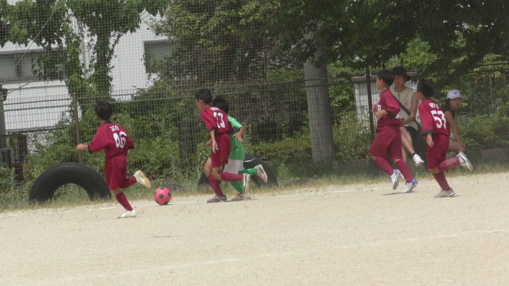 1日目・2日目・3日目とDFを中心に教えた試合、DFがそこそこ出来ると、攻められてもボールを奪った時、また、奪われた時に攻守が早くなるからだ。