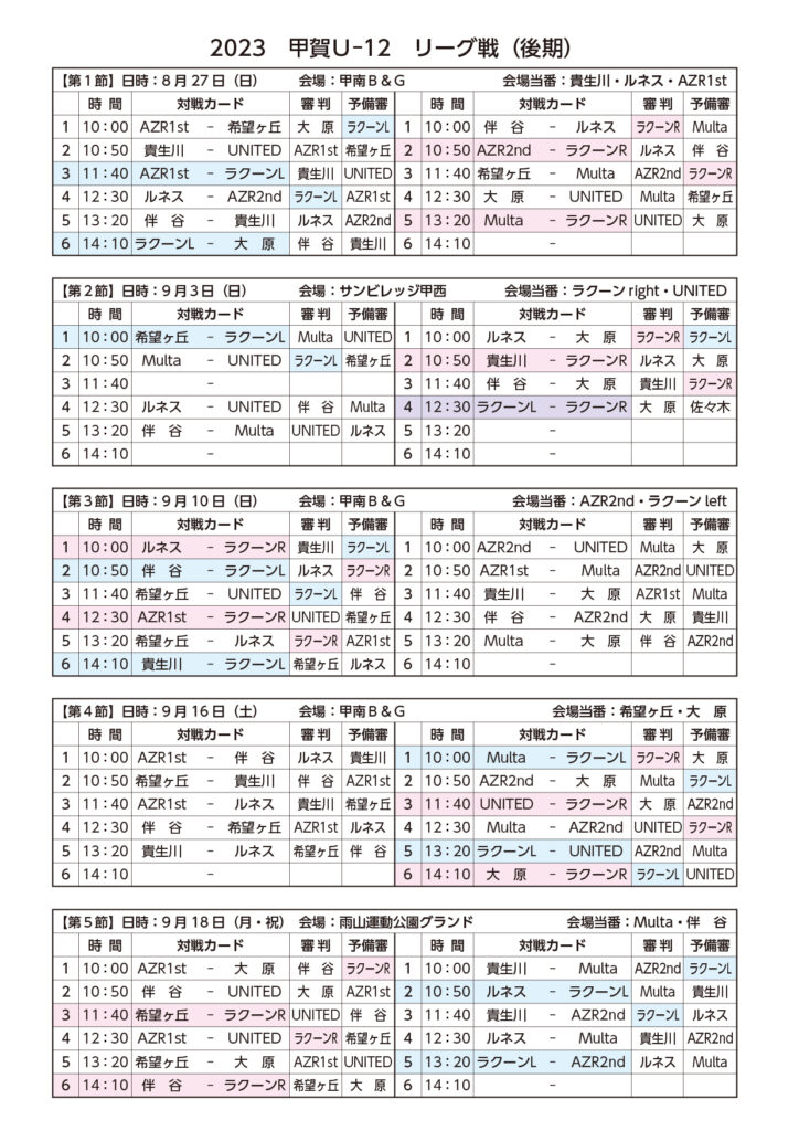 さて、U-12リーグ戦 後期の詳細を下記の通りお知らせいたします。