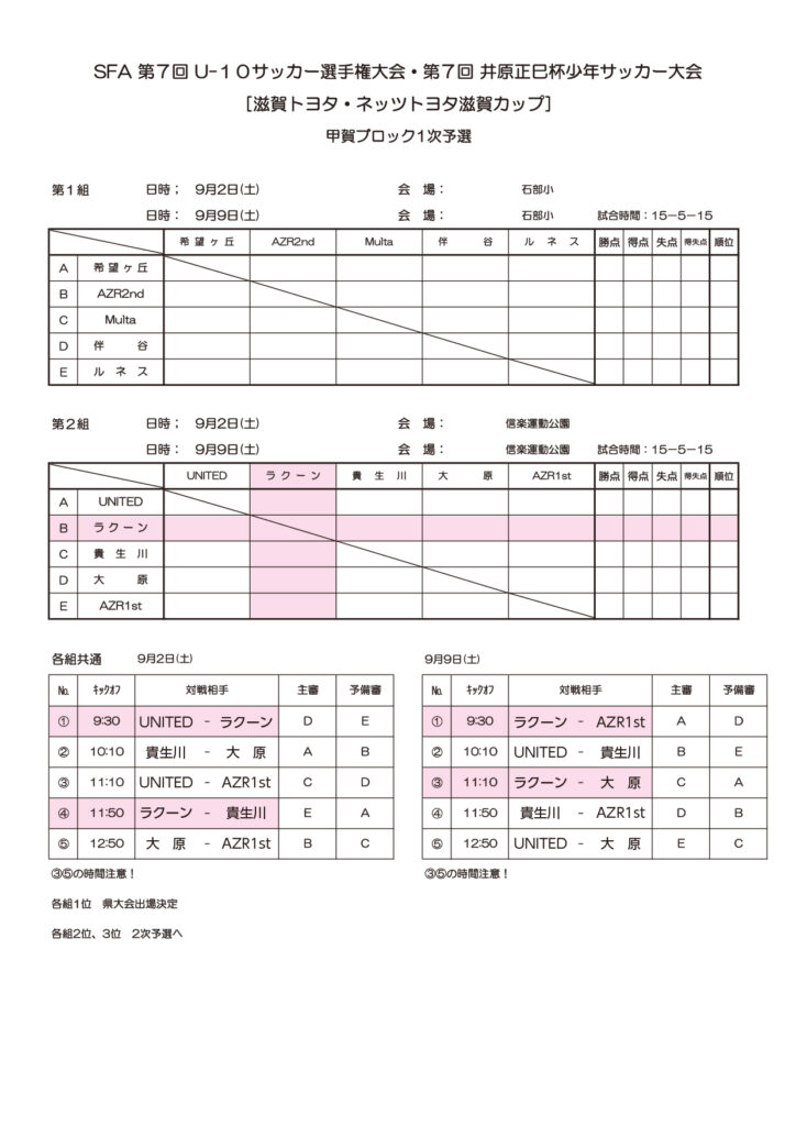 さて、U-10サッカー選手権大会1次予選の詳細を下記の通りお知らせいたします。