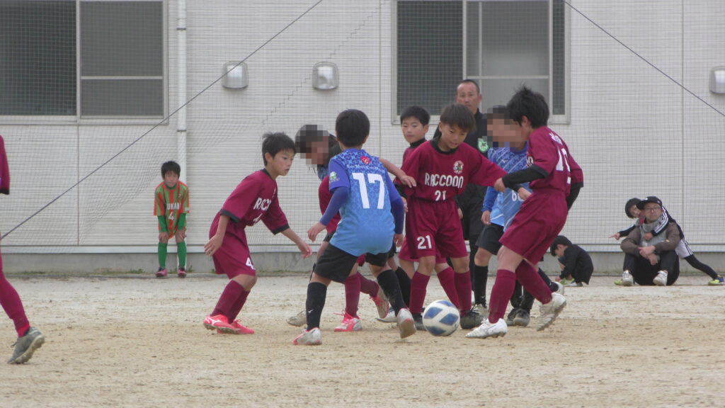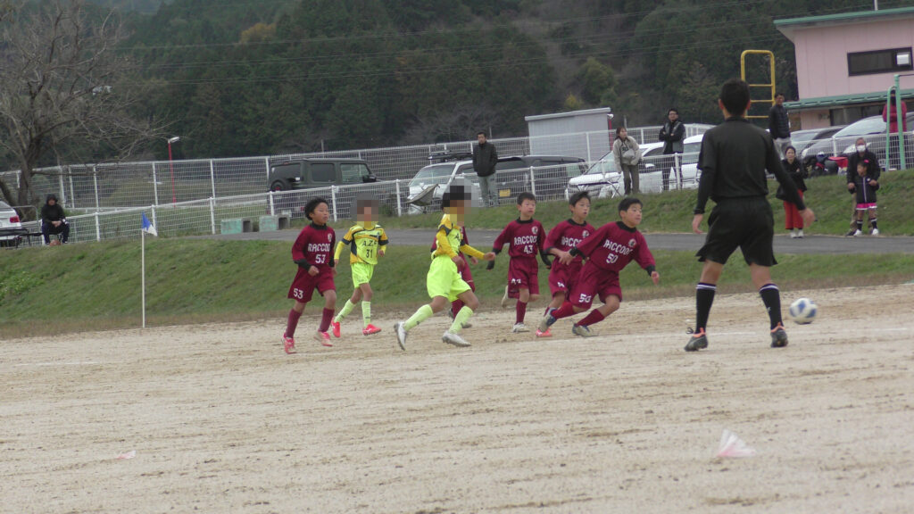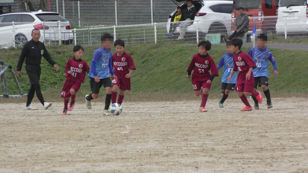 ラクーンは大きいパス(ロングキック)は使用していないので、細かいドリブル、ショウトパス(短いパス)等を上手く組み合わして試合をしているので、プレッシャーが厳しい時にどう対応し切れるのかが出来ていなかったので、失点が多く見られた。