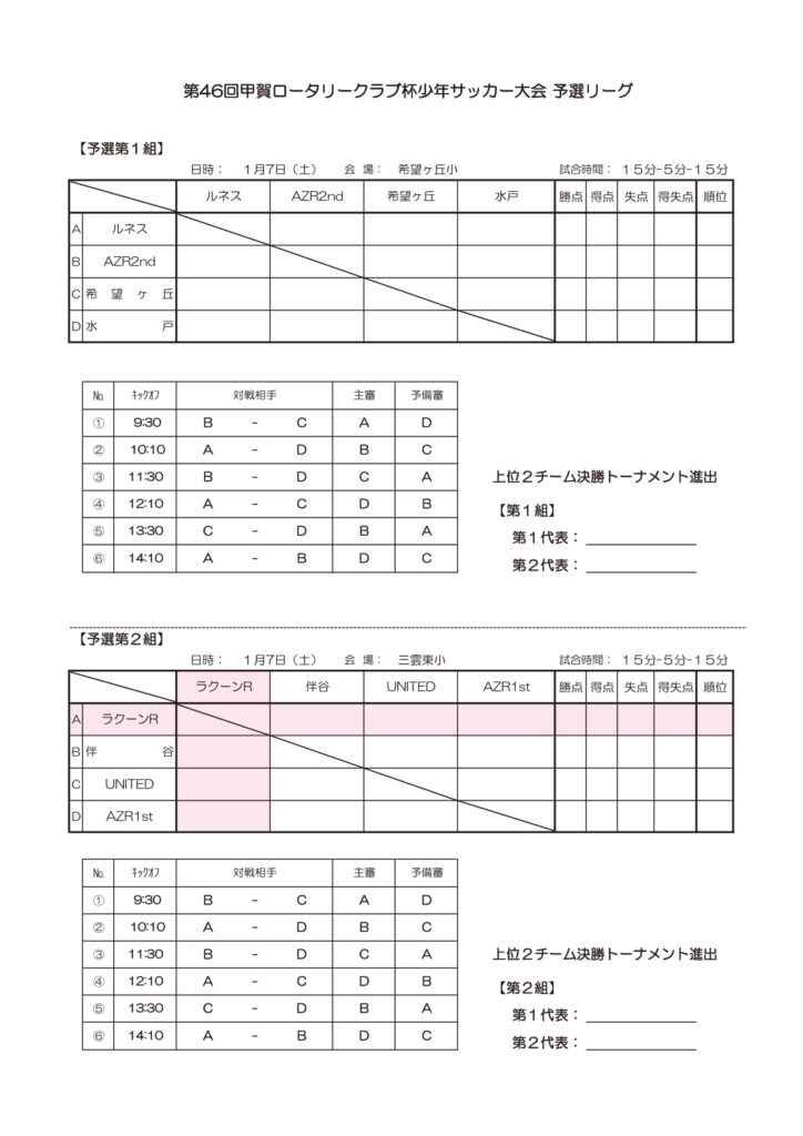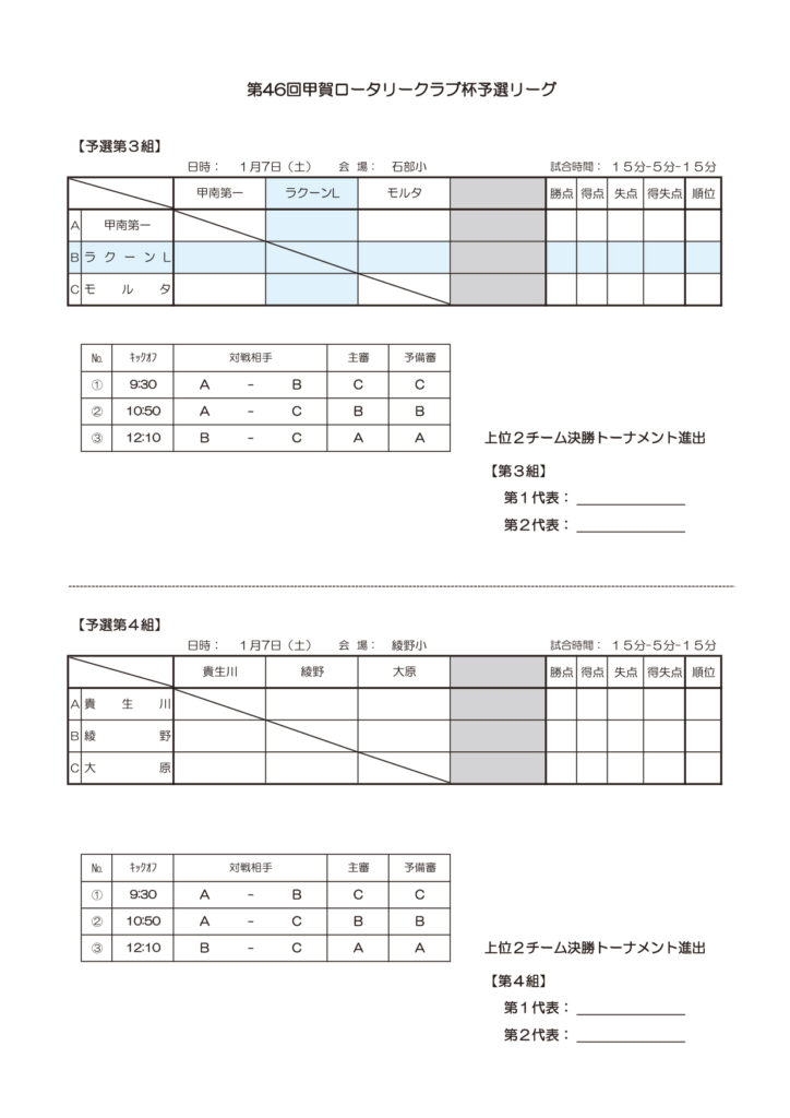 さて、U-12水口ロータリークラブ杯の詳細を下記の通りお知らせいたします。
