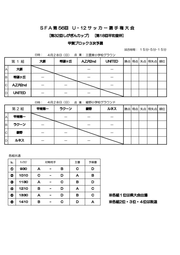 さて、U-12サッカー選手権大会3次予選の詳細を下記の通りお知らせいたします。