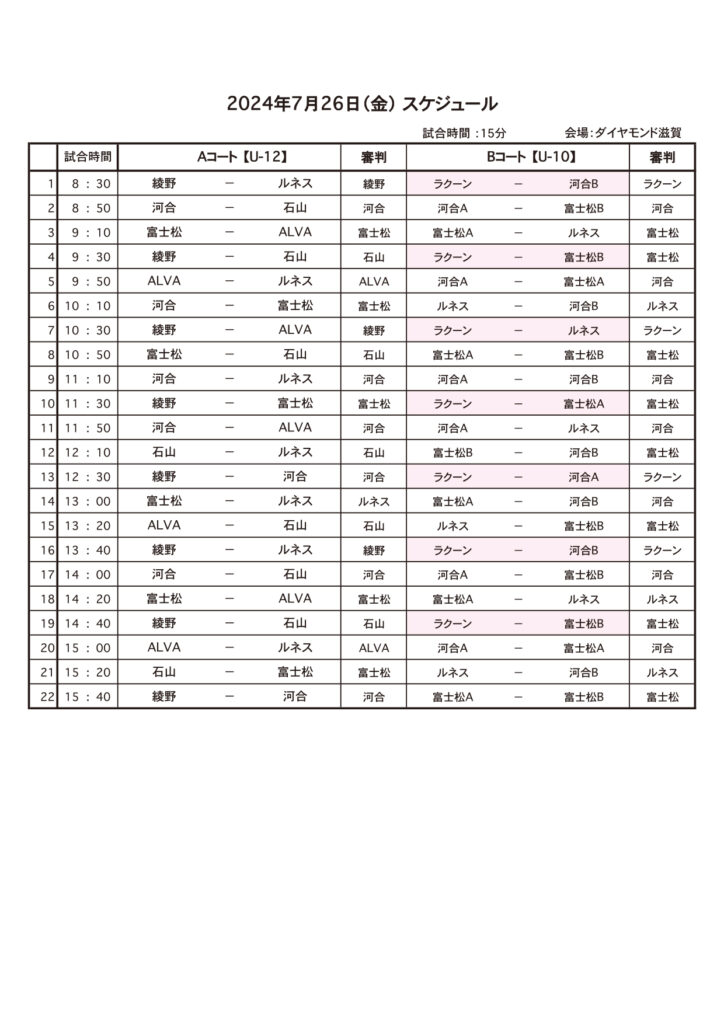 ※試合当日、検温、体調の確認などしてください。