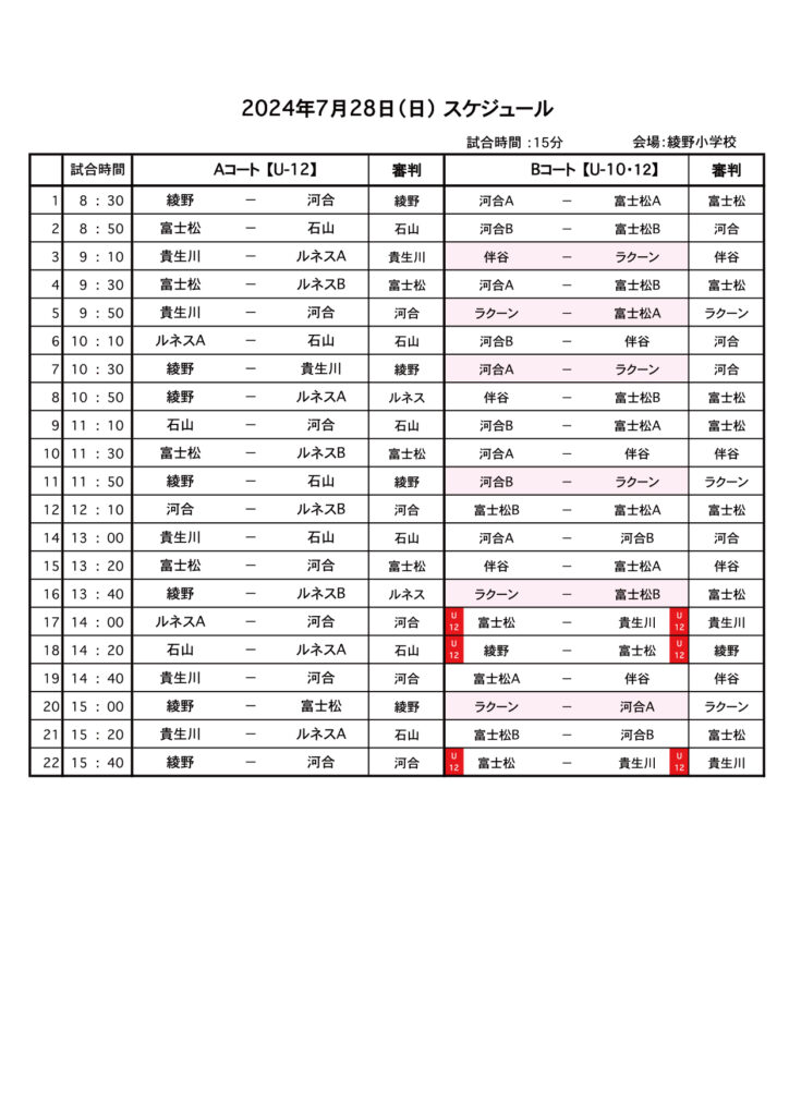 さて、U-10綾野招待の詳細を下記の通りお知らせいたします。