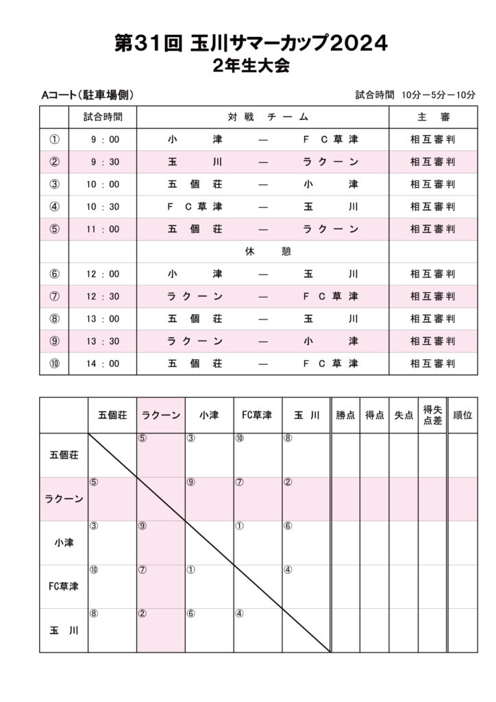 さて、U-8玉川招待の詳細を下記の通りお知らせいたします。