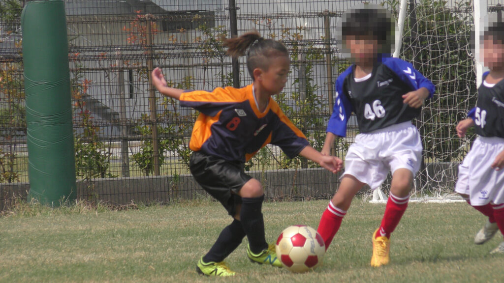 ドリフルはある程度できてはいるが、肝心なときに大きなドリブルになることと、縦のドリブルも多かった。これでは、相手を抜く事ができない。トラップは大きくなったりしていた。そこを、相手に取られる場面も見られた。ボールを奪うはそこそこ出来ていたのでよしとしょう。
