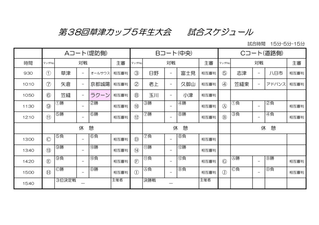※試合当日、検温、体調の確認などしてください。