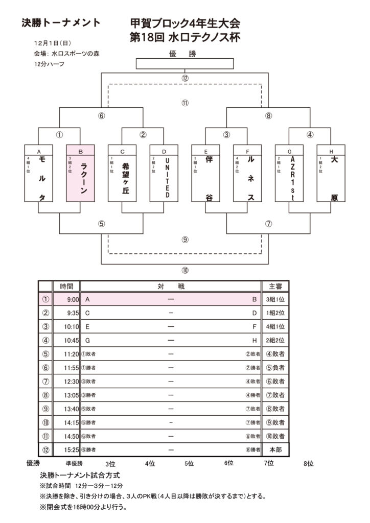 さて、U-10テクノス杯決勝トーナメントの詳細を下記の通りお知らせいたします。